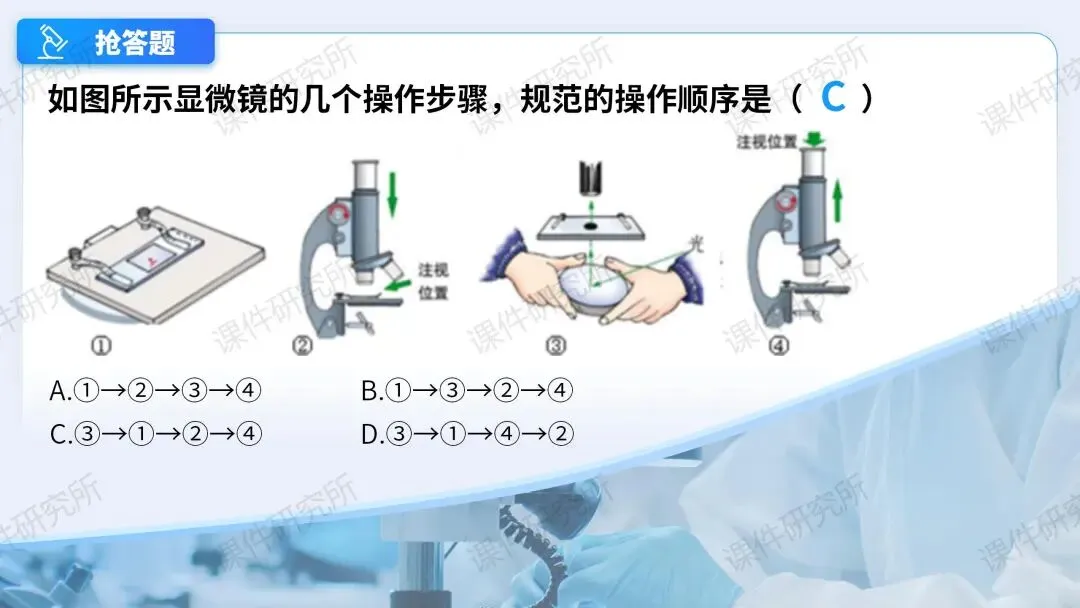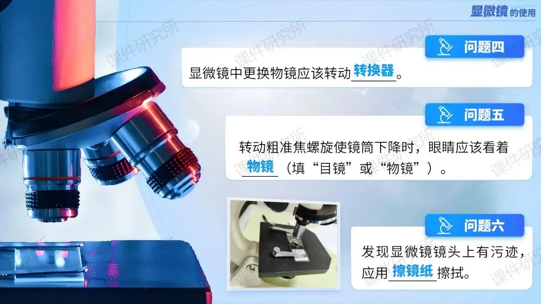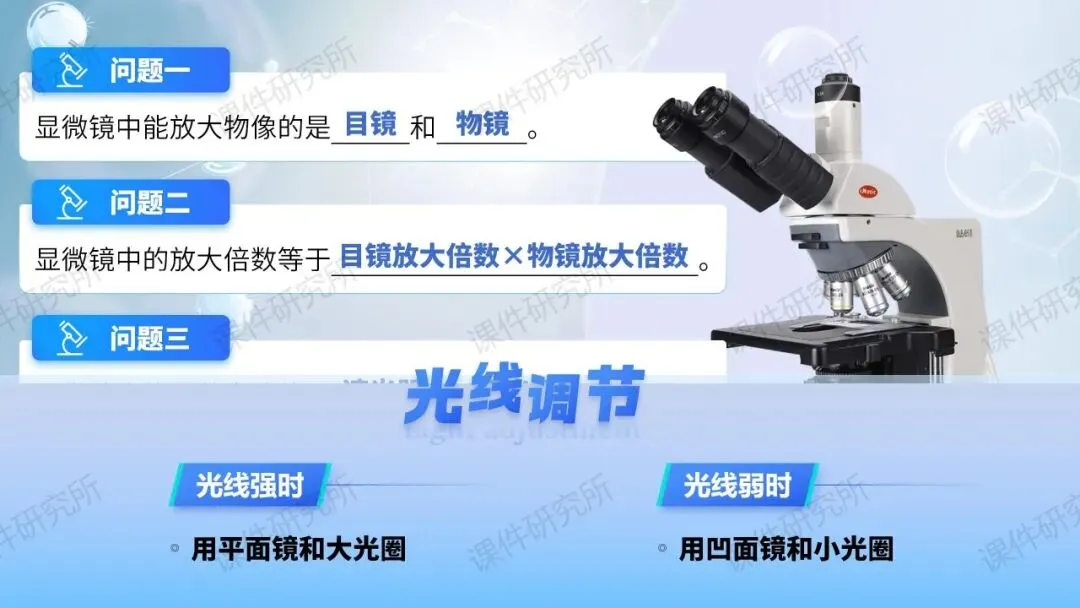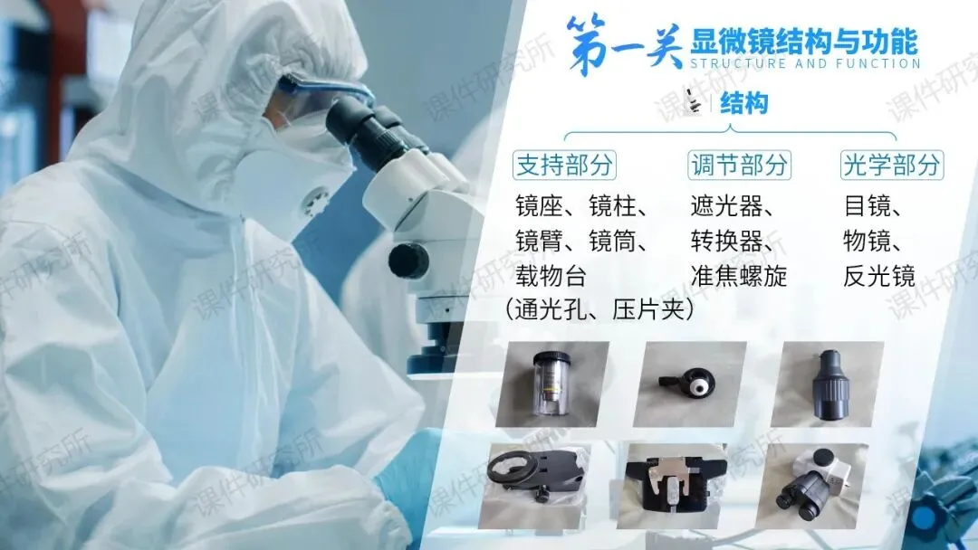 今天分享的是一个苏科版的中考一轮复习公开课课件《显微镜观察类实验复习》。教研员规定公开课要有新意。老师原本的课件比较常规,传统的老师讲授归纳知识点。