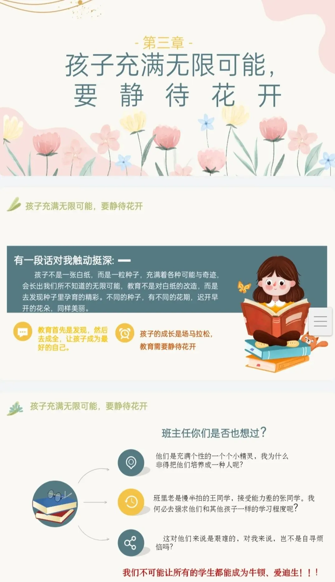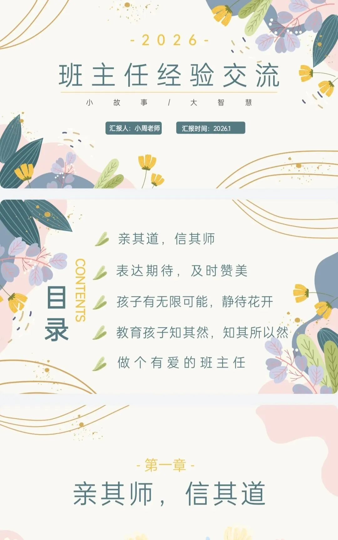 大家好,我是小周老师,从教以来面对形形色色的学生,也积累了很多自己的经验,每次学校要求经验分享,我总乐而不疲,现在把我分享过的课件和发言稿也分享出来,希望能帮助到大家。