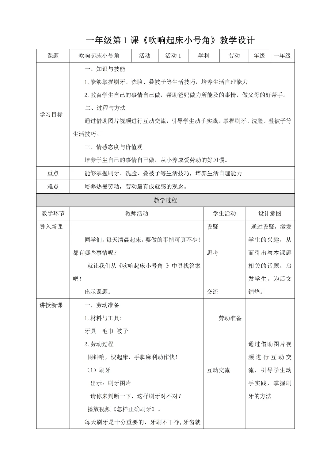 北师大版《劳动实践指导手册》一年级课件+教案