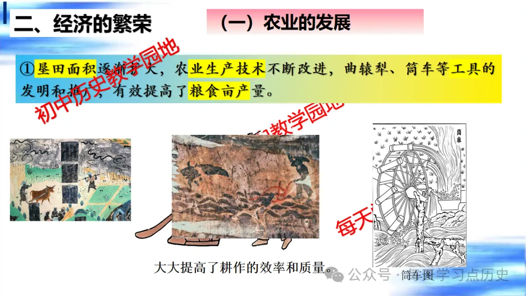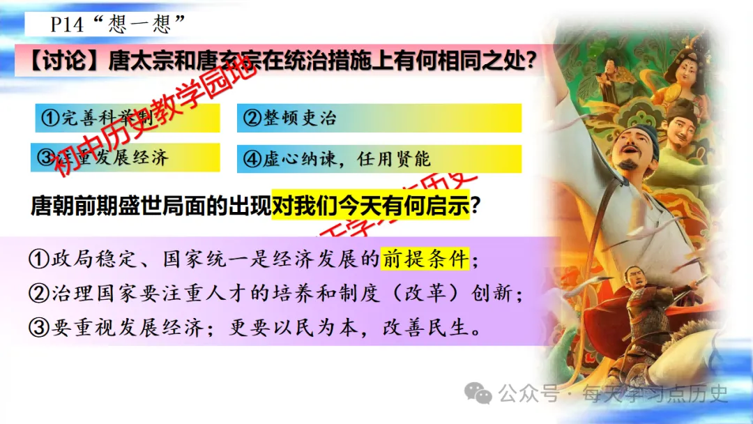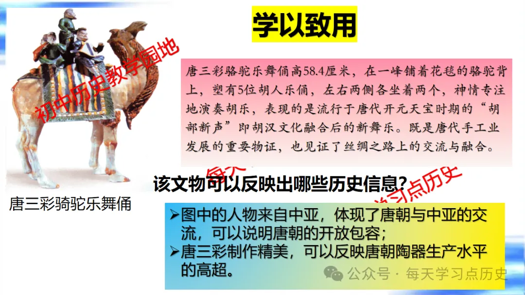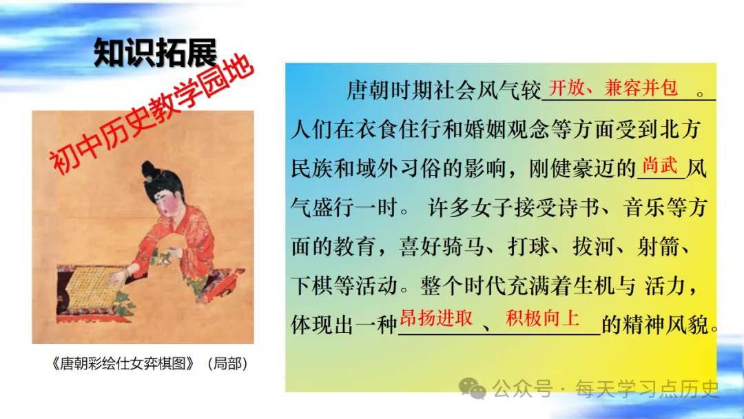 每天学习点历史公众号是初中历史教学园地的辅助号,发表的资料习题多点