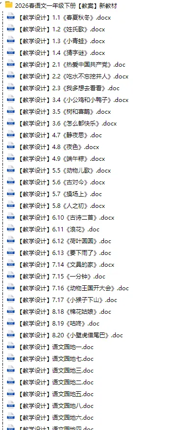 2026春语文一年级下册 教案(人教版),可下载打印!