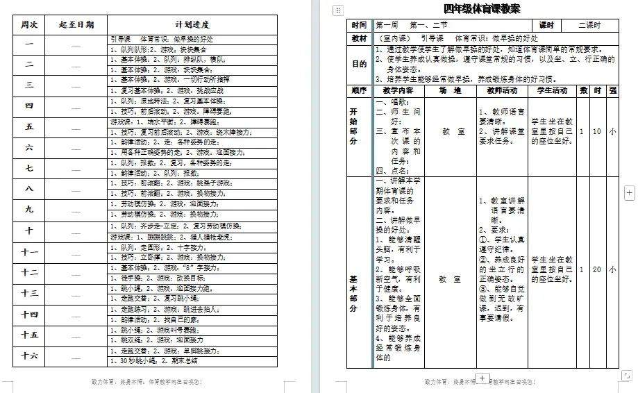 福利 | 小学四年级下册体育全套的教案课程(收藏下载)!