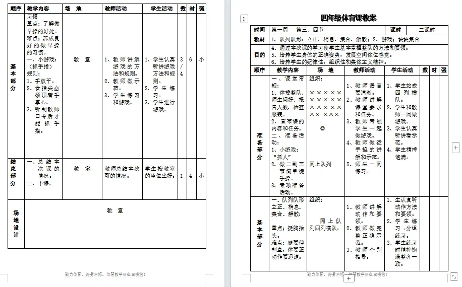 当前位置:首页>教案>福利 | 小学四年级下册体育全套的教案课程(收藏下载)!