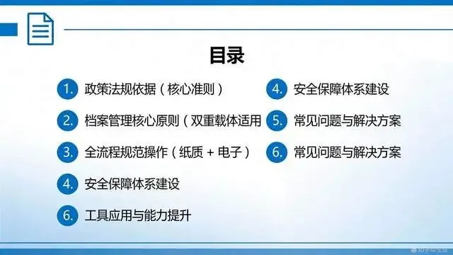 结合本指南及企业 / 单位实际,制定完善的档案管理制度,形成 **“制度 + 流程 + 表单”** 的管理体系,核心制度包括: