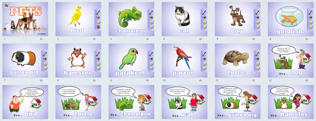 今天分享的是宠物主题趣味英语学习素材,含5套精美课件、10套手工教具和写作练习和视频!
