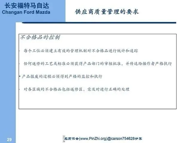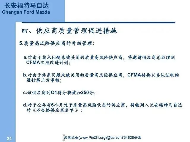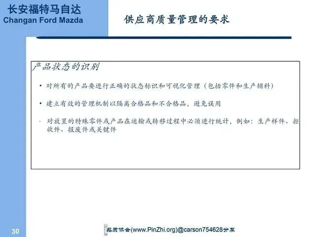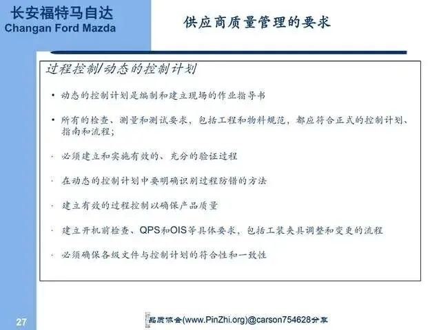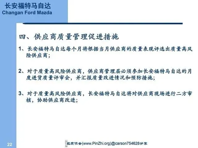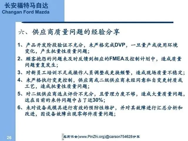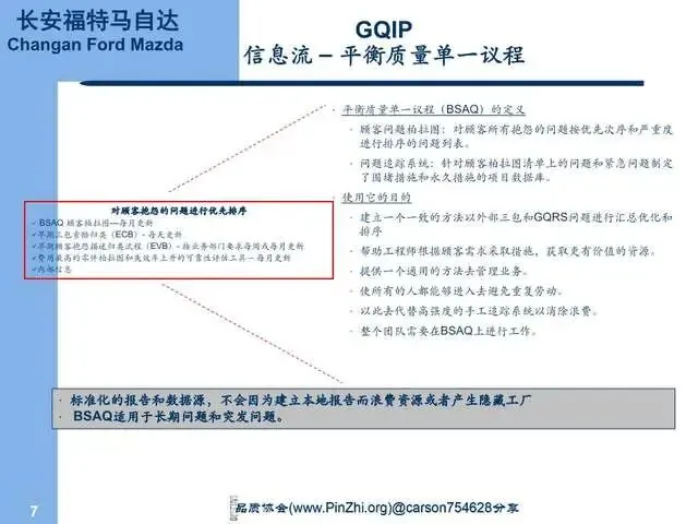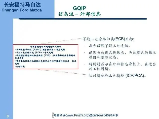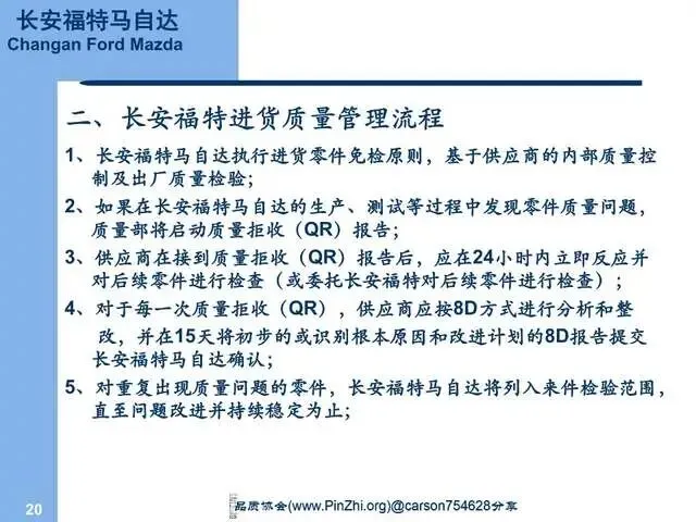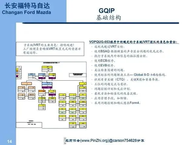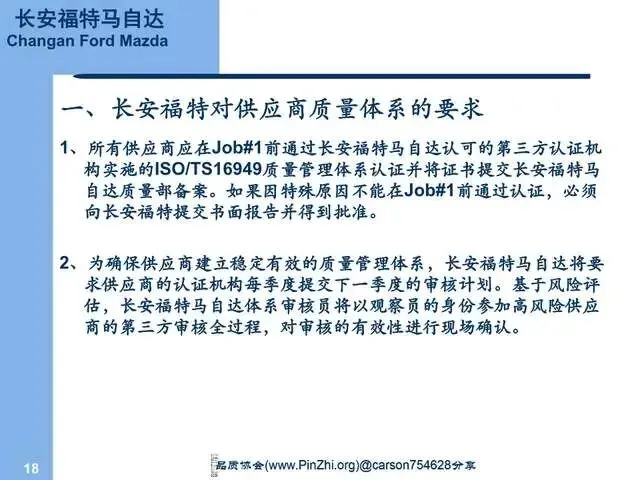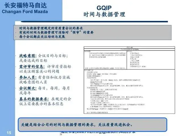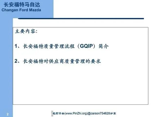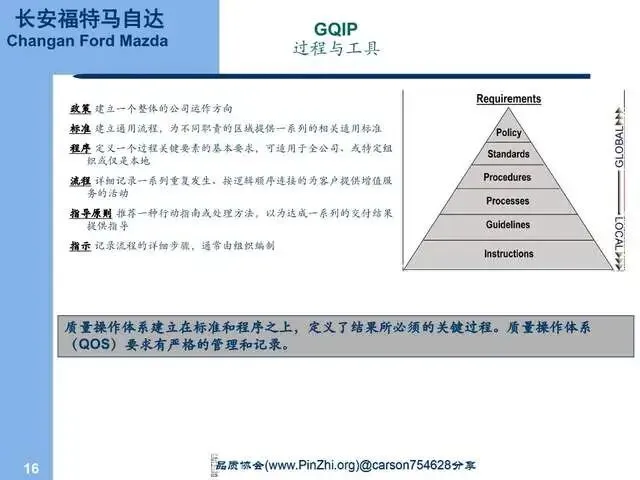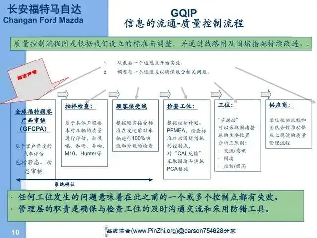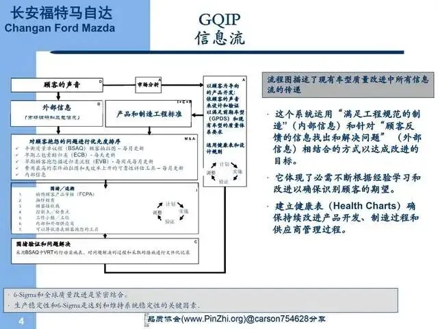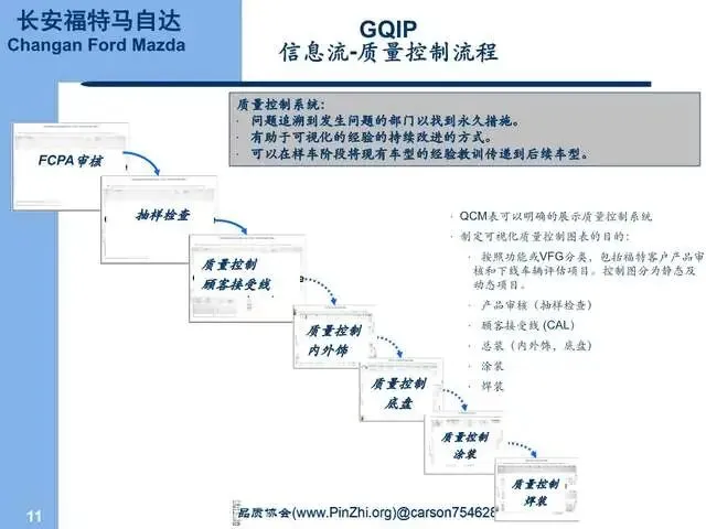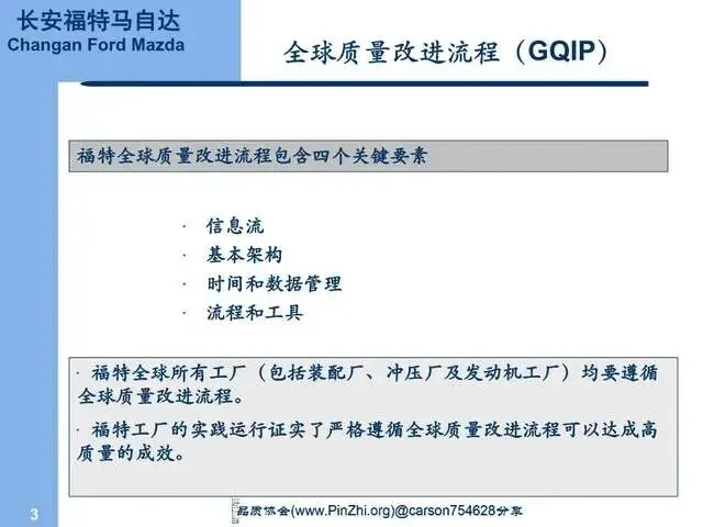 长安福特质量管理体系以IATF16949为基础,融合福特全球标准与本土适配,以GQIP 全球质量改进流程为核心,贯穿 “研发 - 供应链 - 生产 - 售后” 全价值链,通过 PDCA 循环、数据驱动与跨部门协同,实现 “零缺陷” 与客户满意,同时以 “大质量” 理念覆盖产品、服务与用户感知。以下从核心架构、关键流程、管控方法、落地保障与成效展开实操说明。