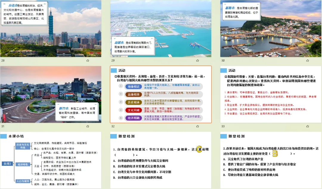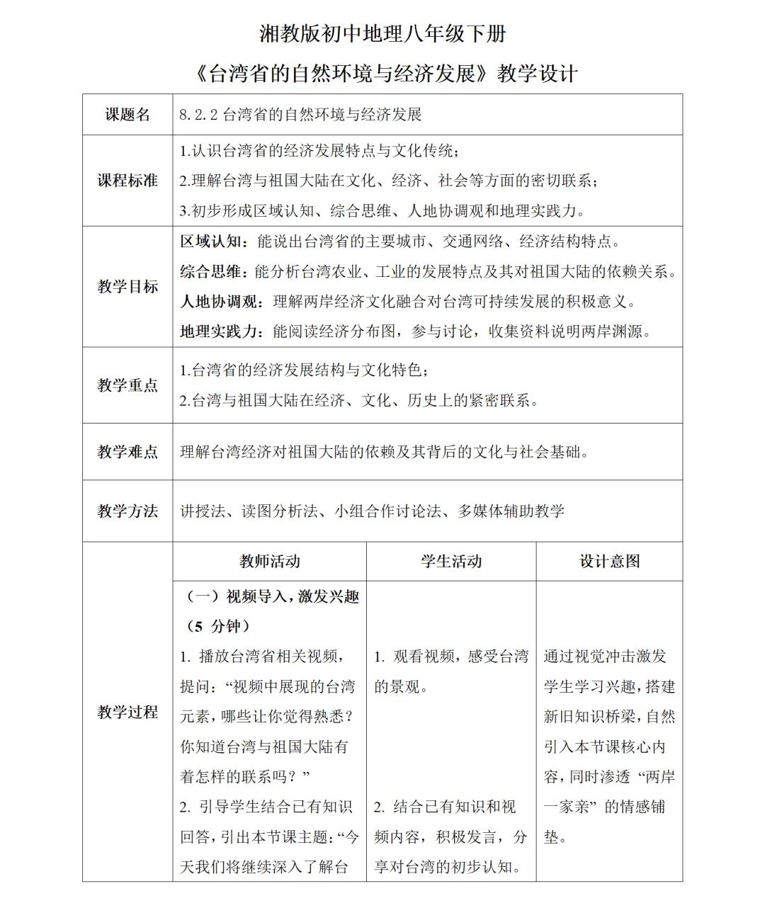 今日重点推荐湘教版八下地理《台湾——地理环境与经济发展》第二课时,40页精品课件聚焦教学实效。