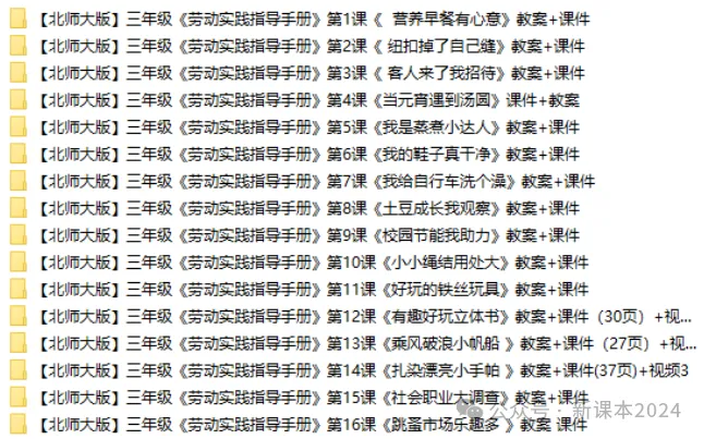 >北师大版《劳动实践指导手册》三年级课件+教案,可下载!