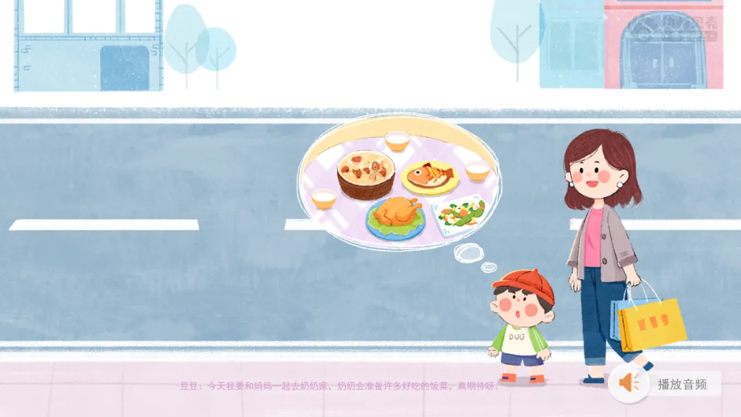 ——图片上豆豆和他妈妈站在路边,他们要去做什么?(去奶奶家)