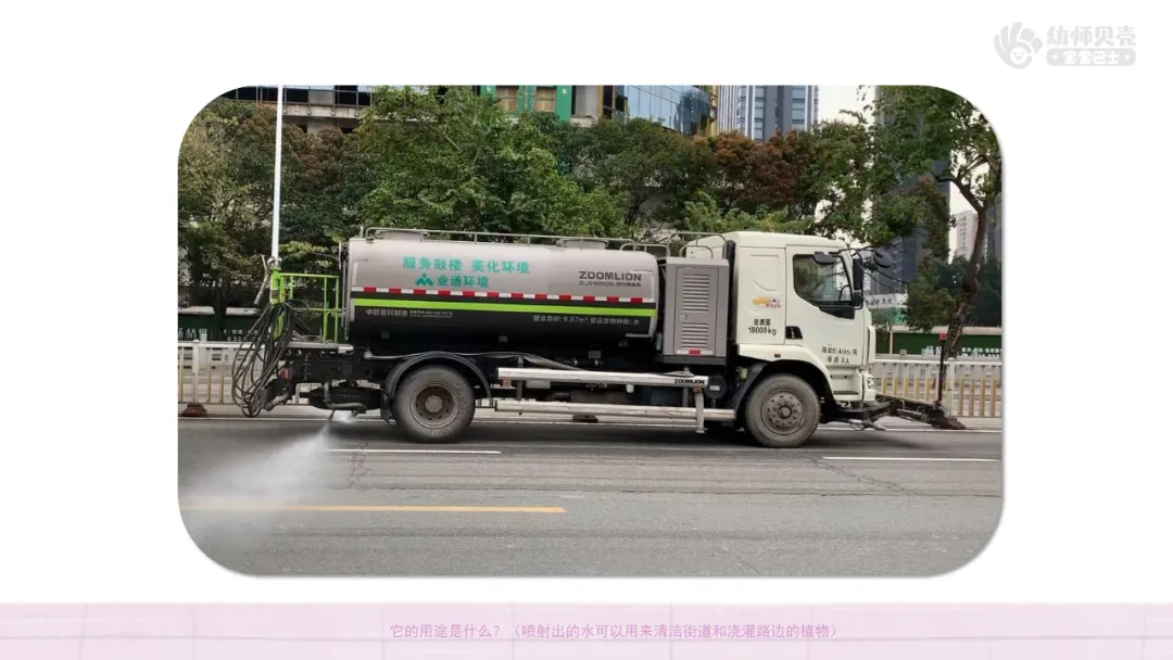 ——它的用途是什么?(喷射出的水可以用来清洁街道和浇灌路边的植物)
