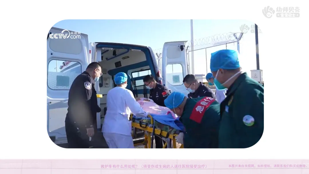 ——救护车有什么用处呢?(将受伤或生病的人送往医院接受治疗)