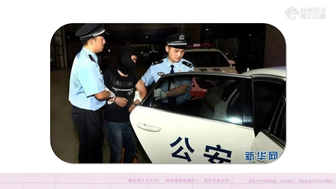 ——警车有什么作用?(帮助警察抓捕坏人、保护大家安全)
