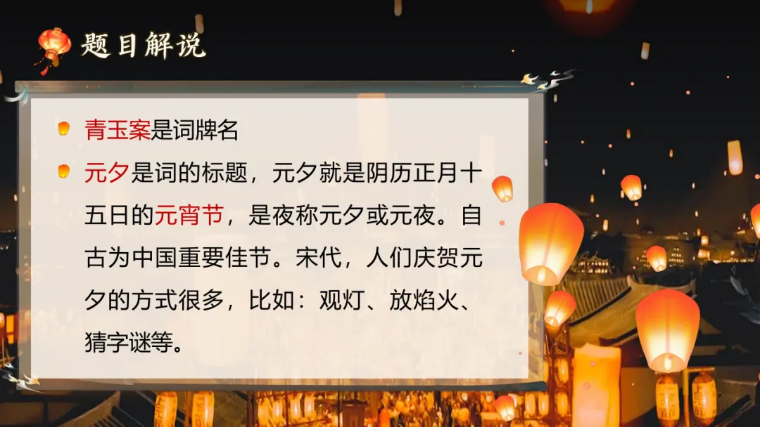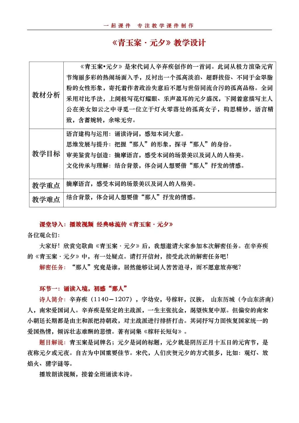 >【高考新增篇目】| 《青玉案·元夕》:课件+教学设计