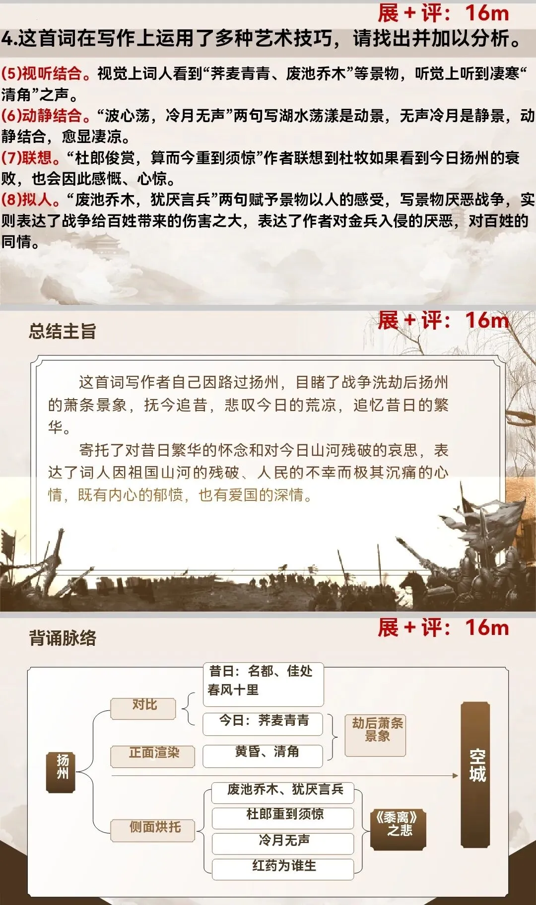 (1)寓情于景。通过写“荠麦、废池乔木、清角”等景物,呈现了劫后扬州的残破荒凉,表现了作者的感伤。