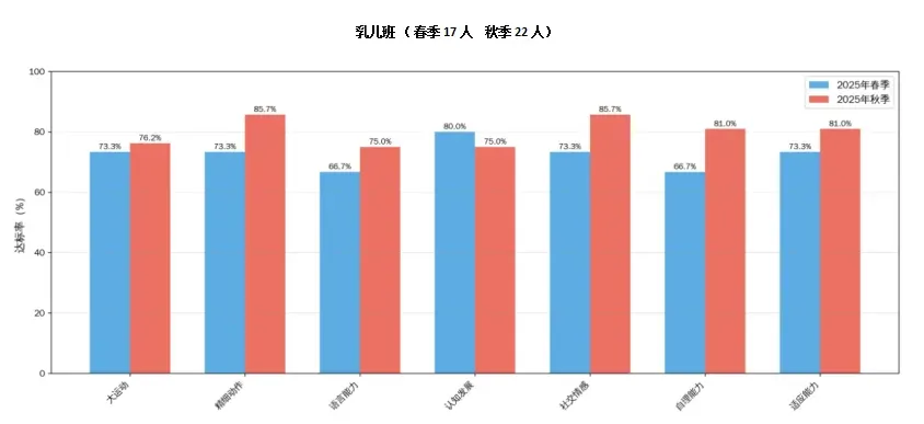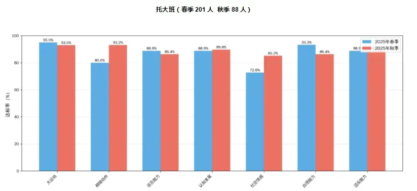 以下是春秋季幼儿发展测评结果数据图: