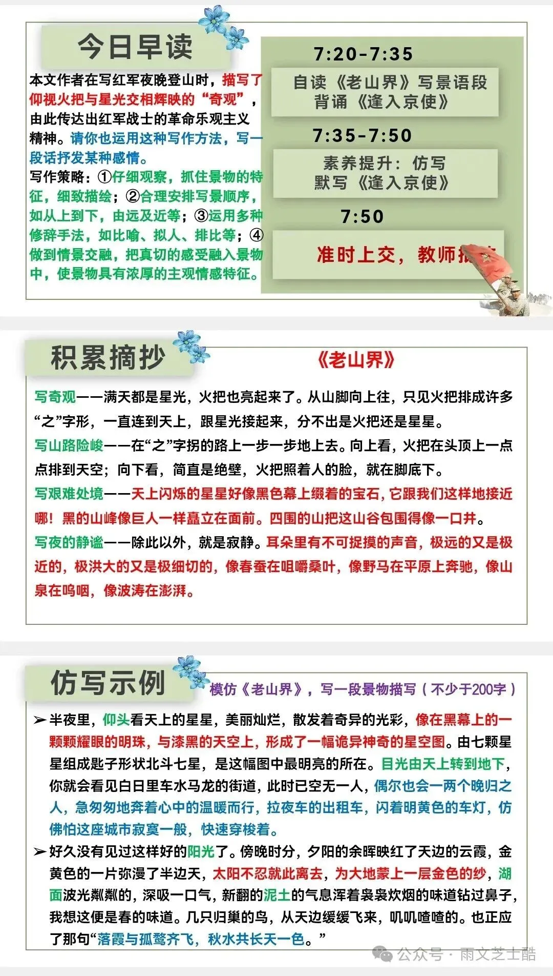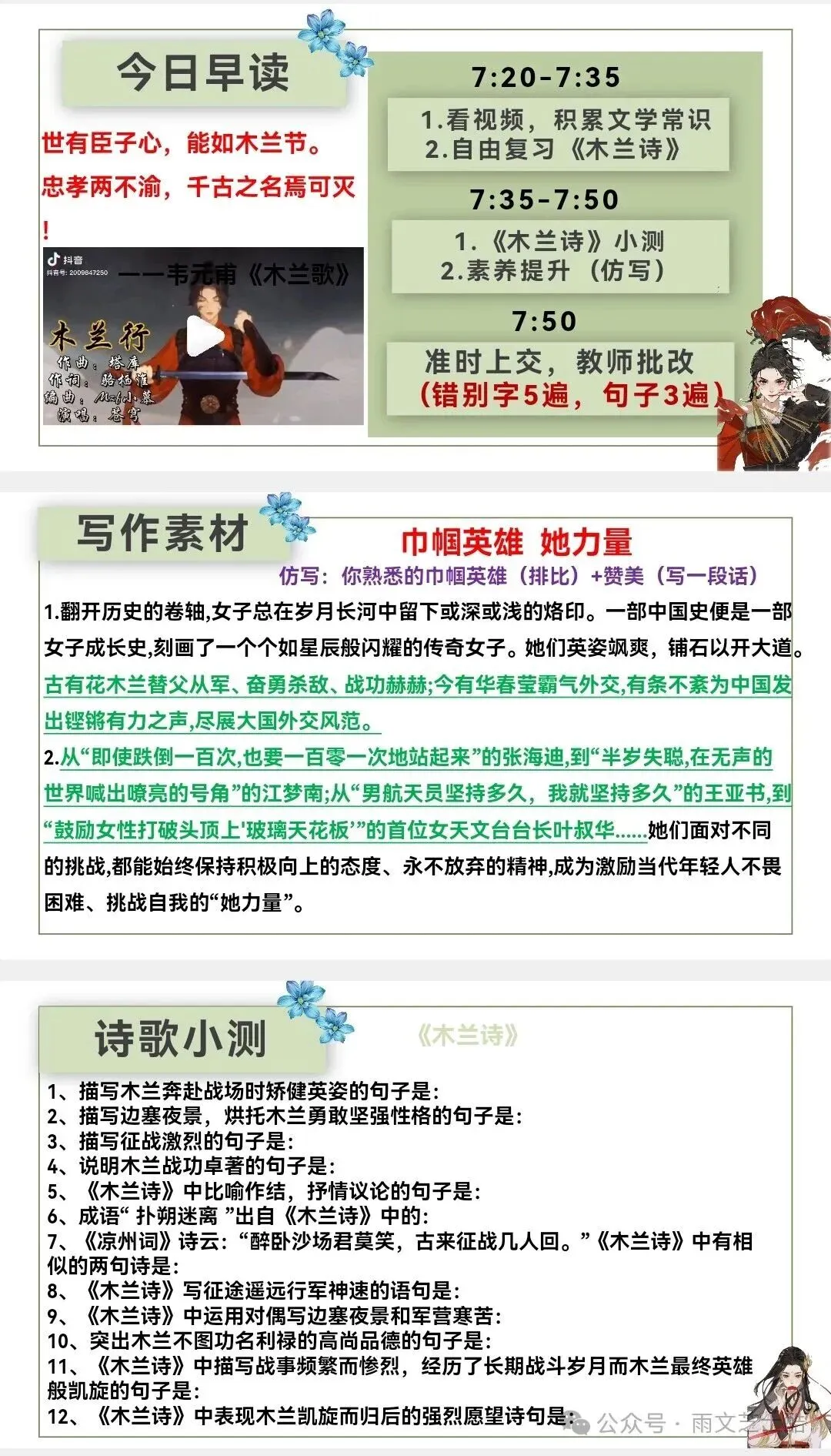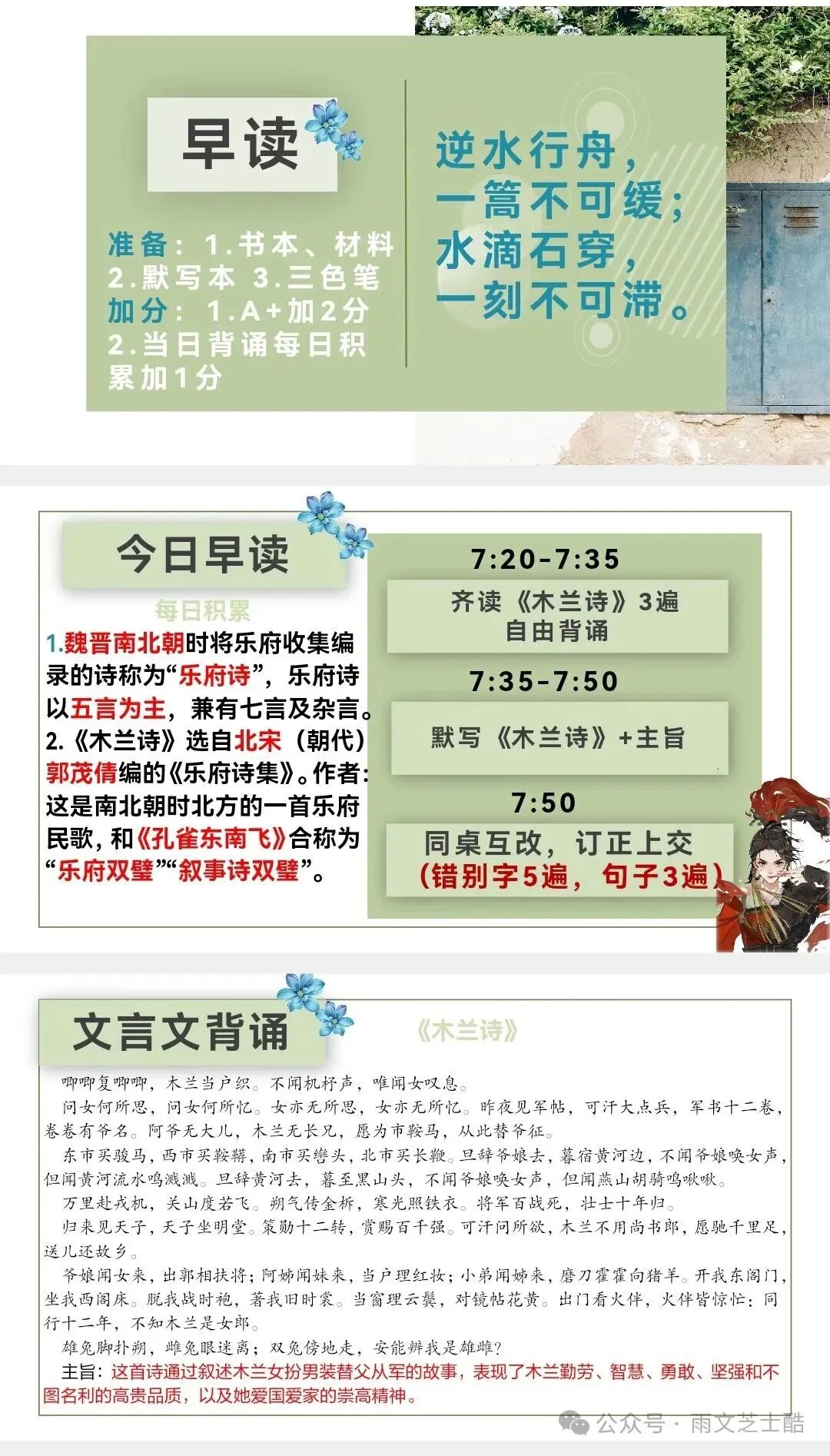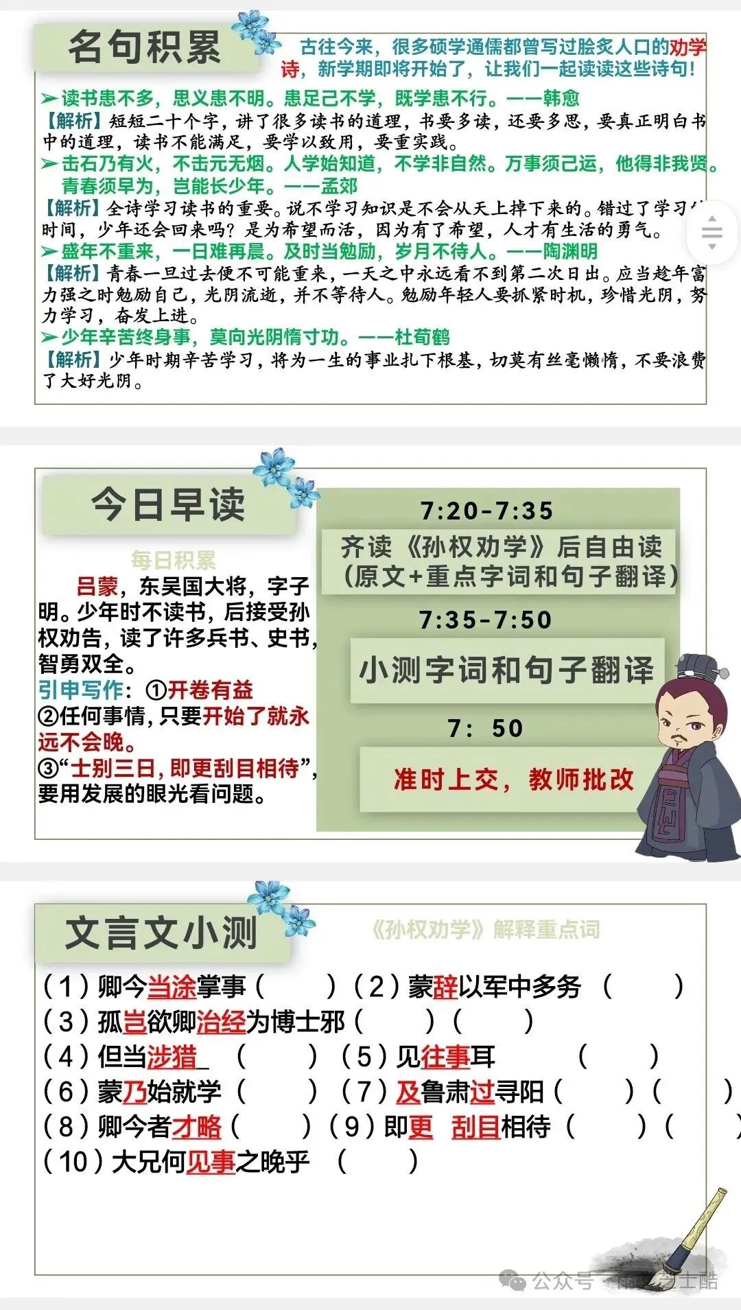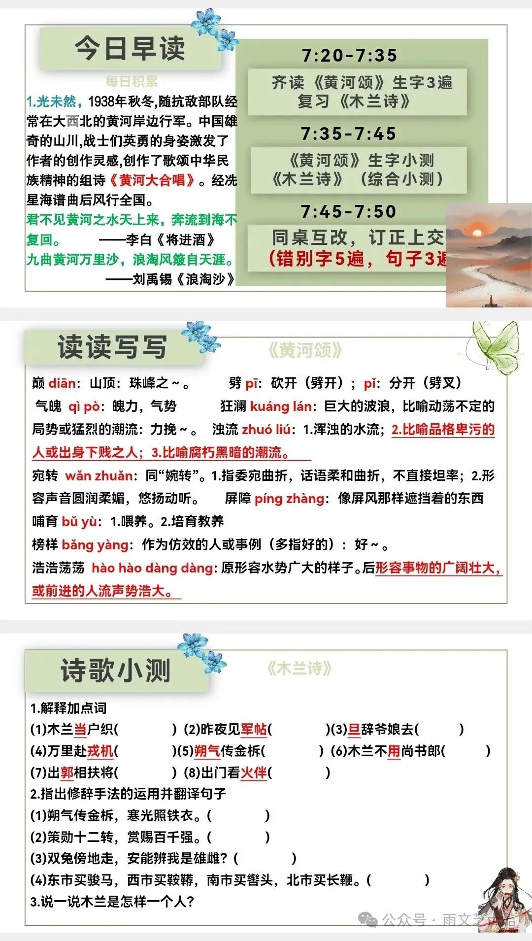 每日任务:背诵➕默写➕小测(每篇古诗文都会有小测和答案)