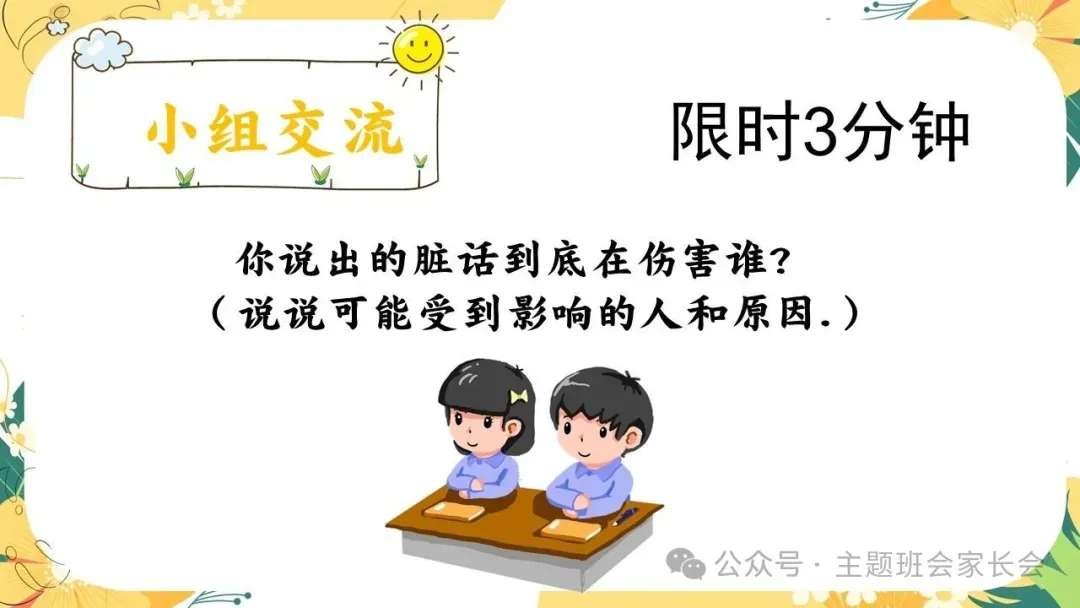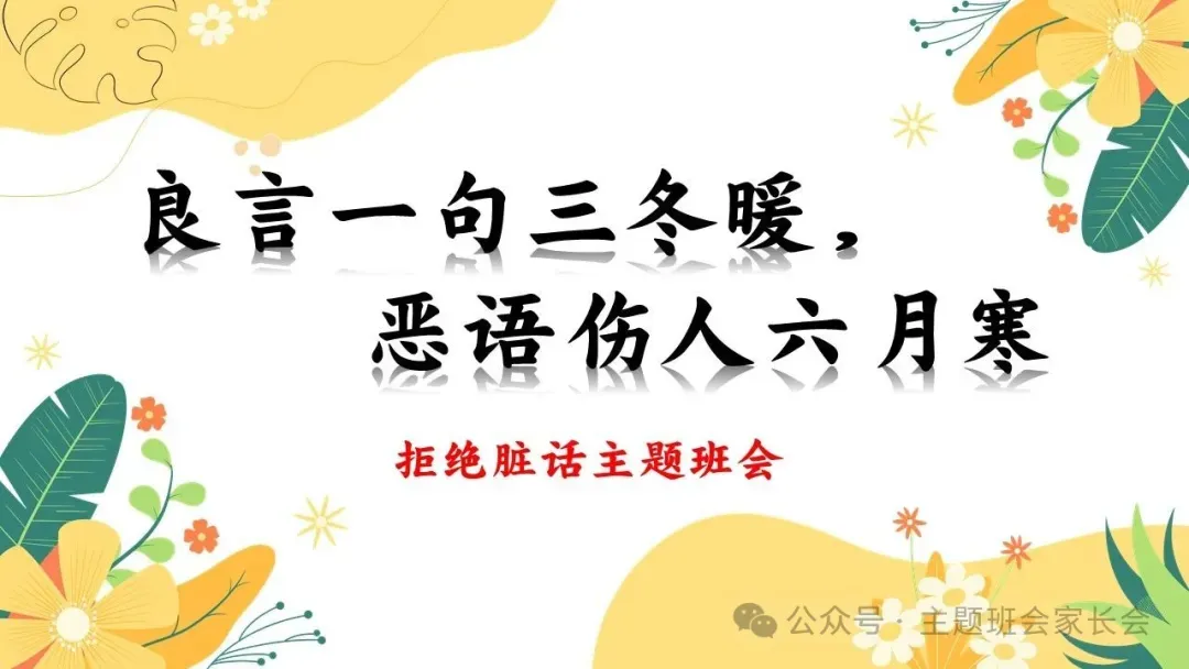 拒绝脏话主题班会ppt课件:良言一句三冬暖,恶语伤人六月寒.含视频