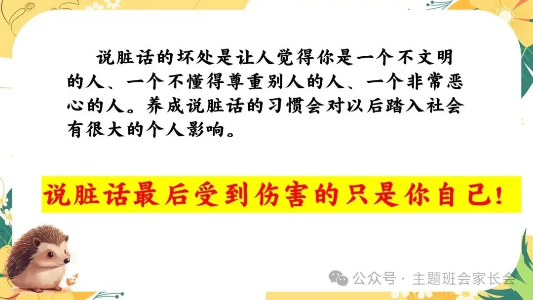 >拒绝脏话主题班会ppt课件:良言一句三冬暖,恶语伤人六月寒.含视频