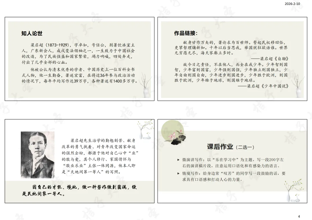 3.走近梁启超先生。课件出示: