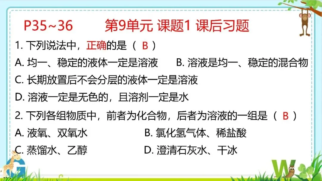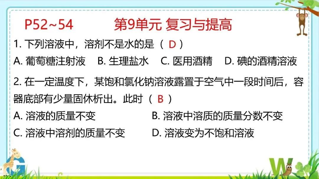 >【希沃课件】人教版九年级化学第9单元课后习题与复习提高教学欣赏!
