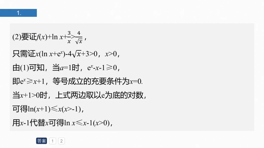 2026高三数学寒假班课件 第三章 进阶篇 不等式证明方法 进阶1 指对放缩