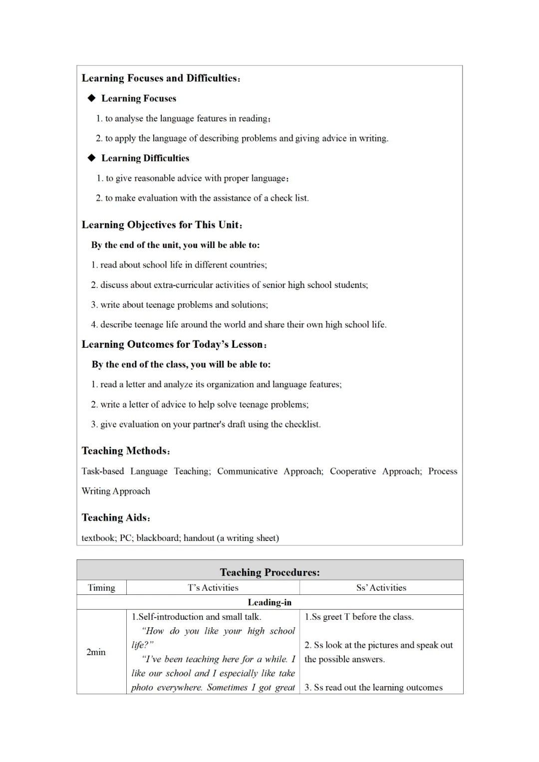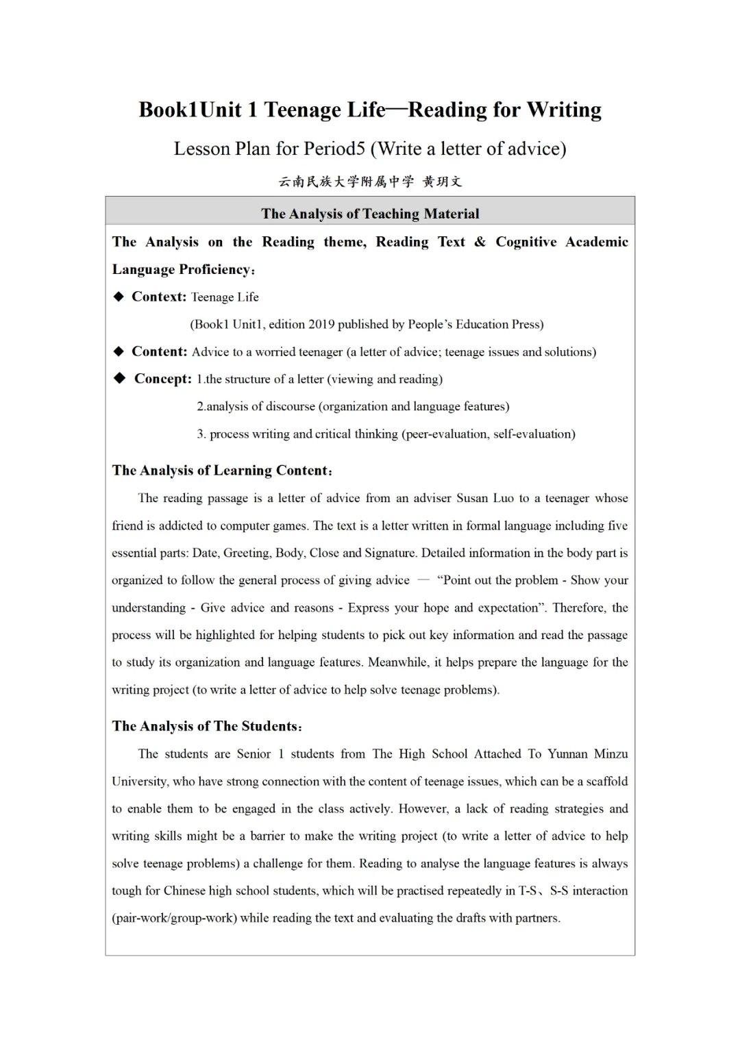 说课课件:人教版必修第一册 Unit 1 Reading for Writing 说课课件 (云南 黄玥文)