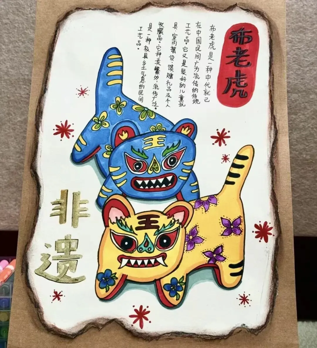- 涂上鲜艳的颜色,让布老虎看起来又威风又可爱