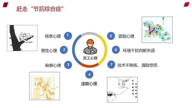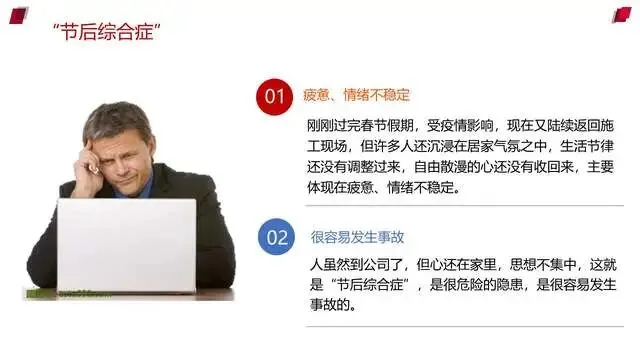 人虽然到公司了,但心还在家里,思想不集中,这就是"节后综合症",是很危险的隐患,是很容易发生事故的