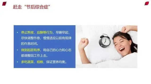 停止熬夜、应酬等行为,早睡早起尽快调整作息,慢慢适应以前有规律的作息时间。