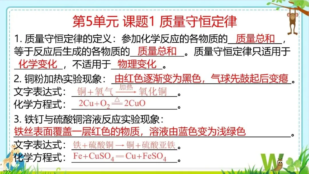 【希沃课件】人教版九年级化学第5单元单元复习与知识梳理教学欣赏!