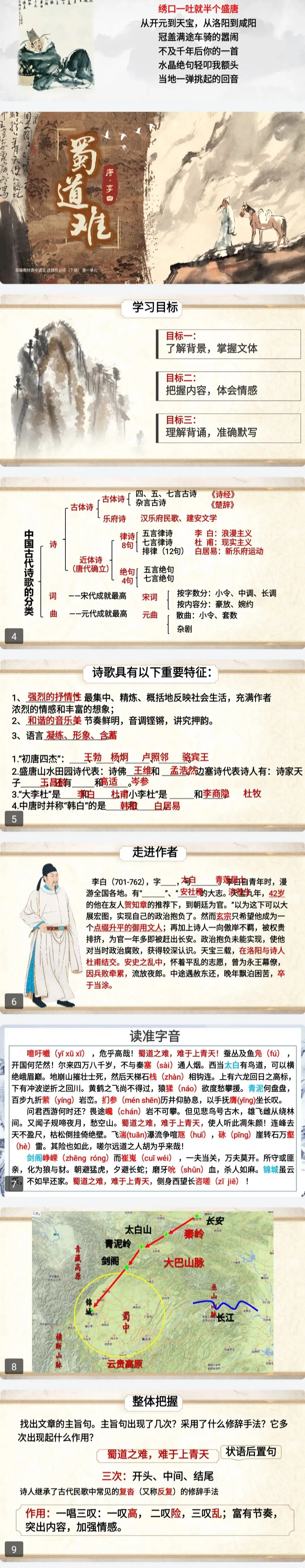 部编版选择性必修下册3.1《蜀道难》课件(图片较多,请私信我发完整)