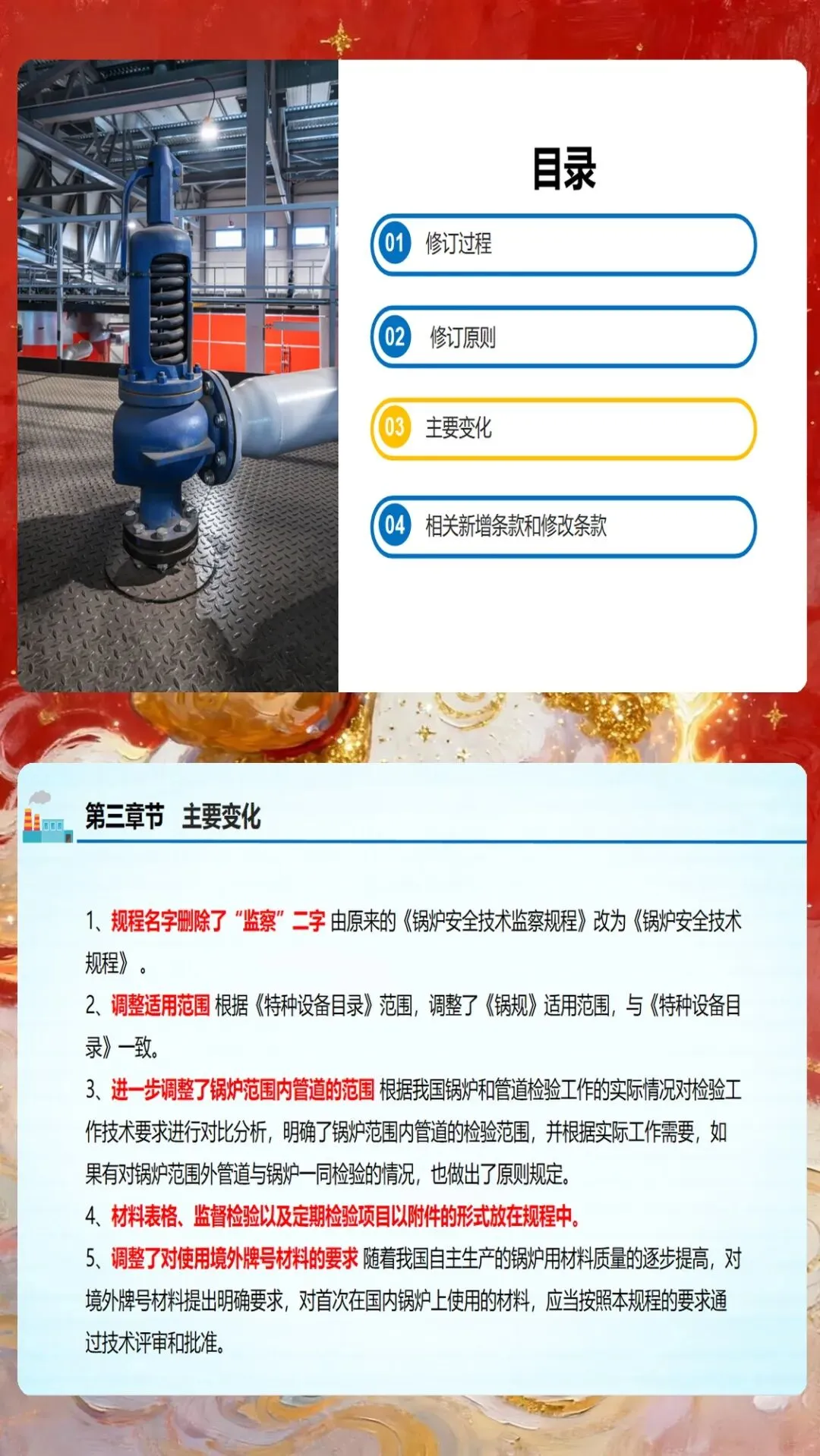 规程的更新:锅炉安全技术规程必须定期进行更新和完善,根据国家和地方的安全法规、标准和规范的变化,以及锅炉的实际情况,及时调整规程的内容和标准。