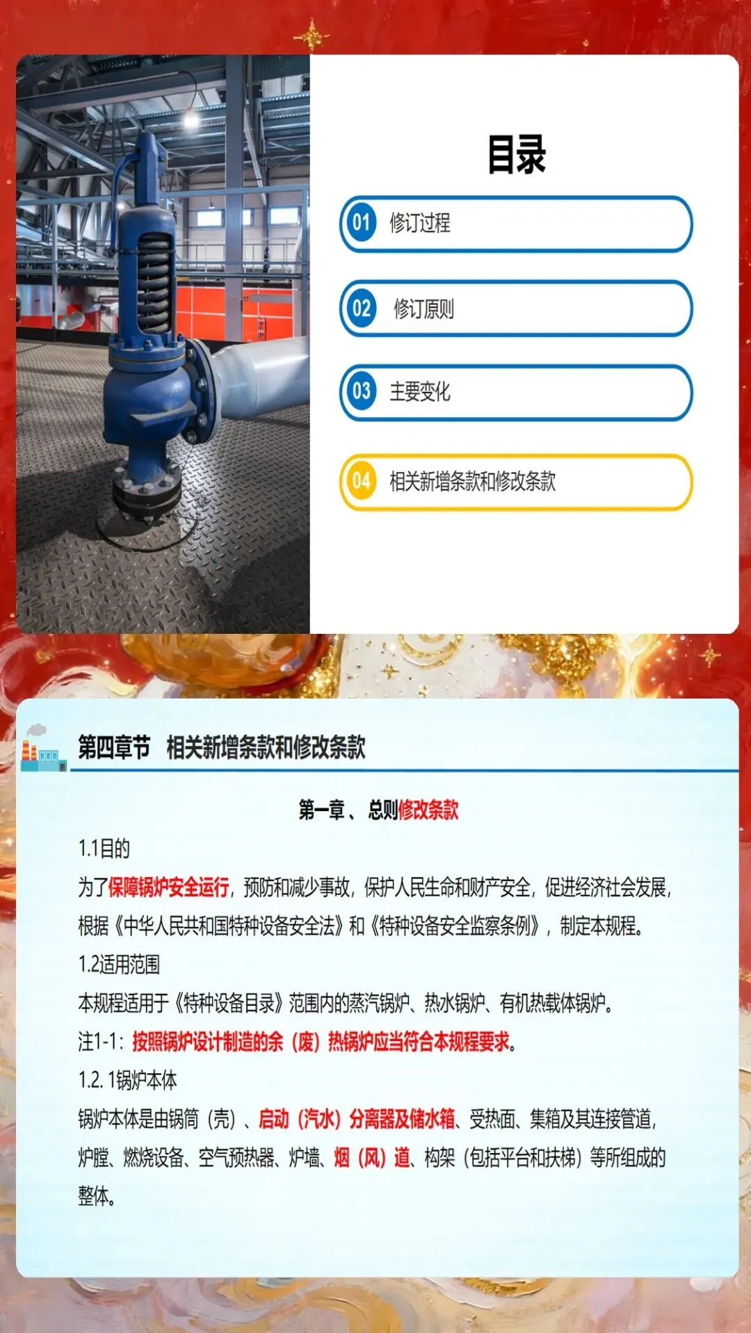 锅炉安全技术规程的主要内容包括以下几个方面: