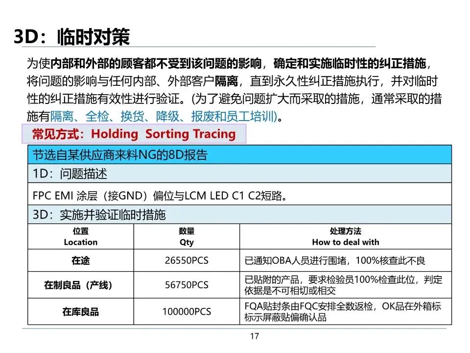 目的:在找到根因前,先把问题 “关住”,不让不良流出 / 扩大正确做法: