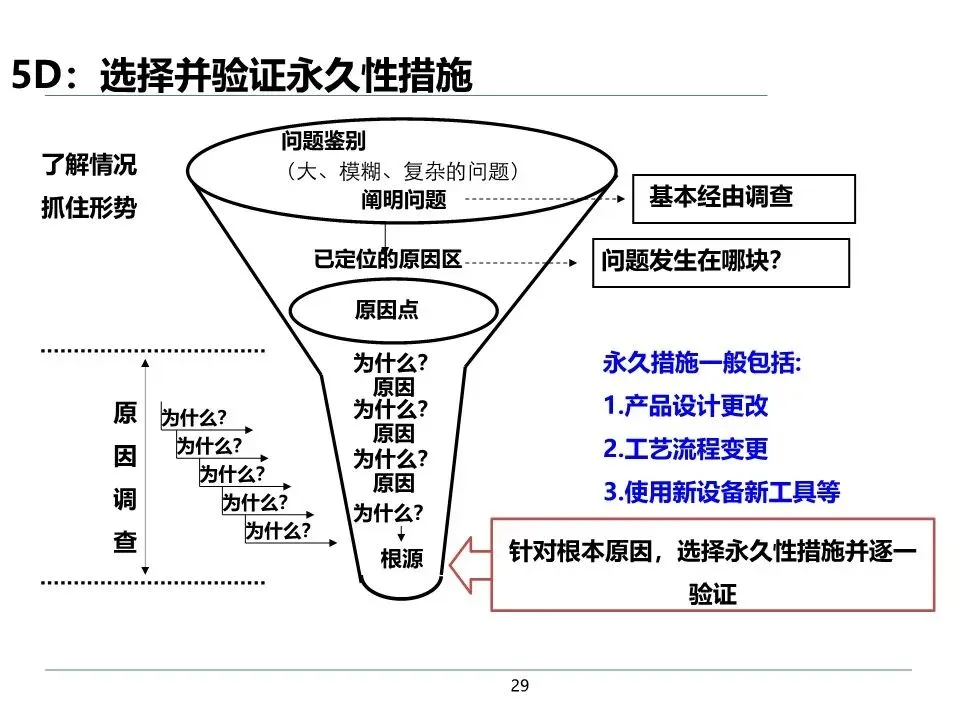 目的:针对真因,制定 “一次性消除根因” 的对策,不是临时补丁正确做法: