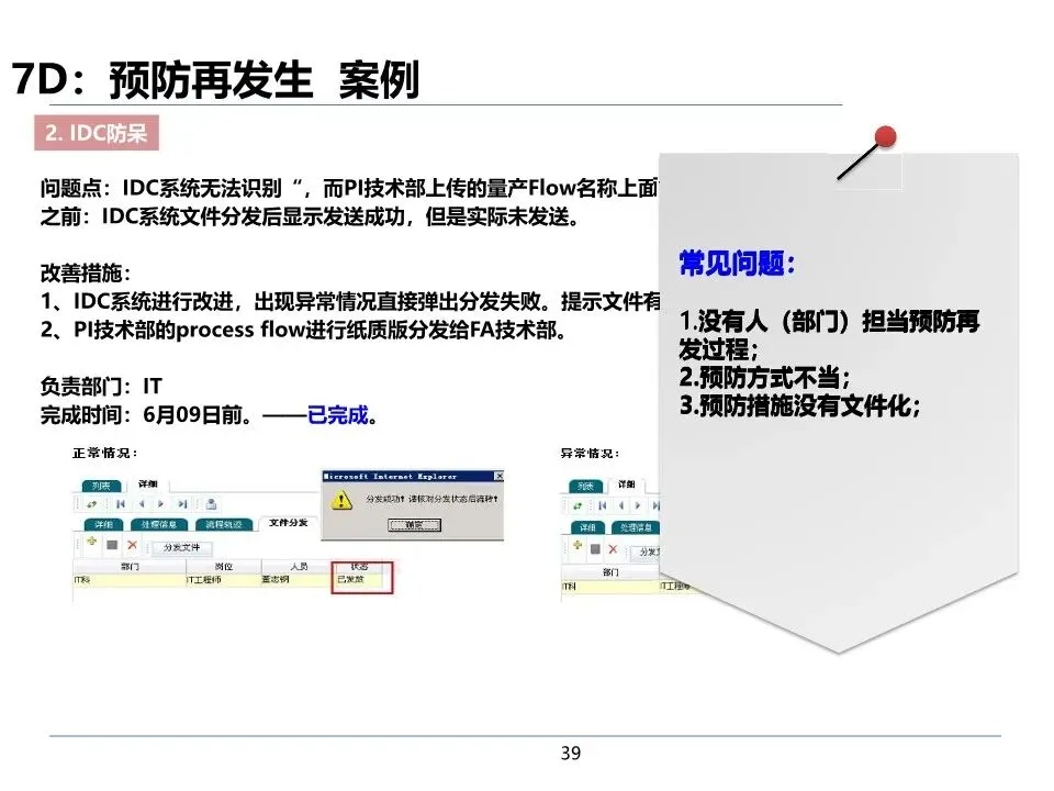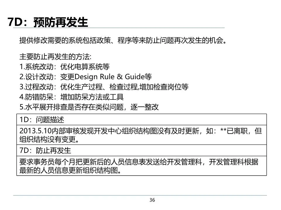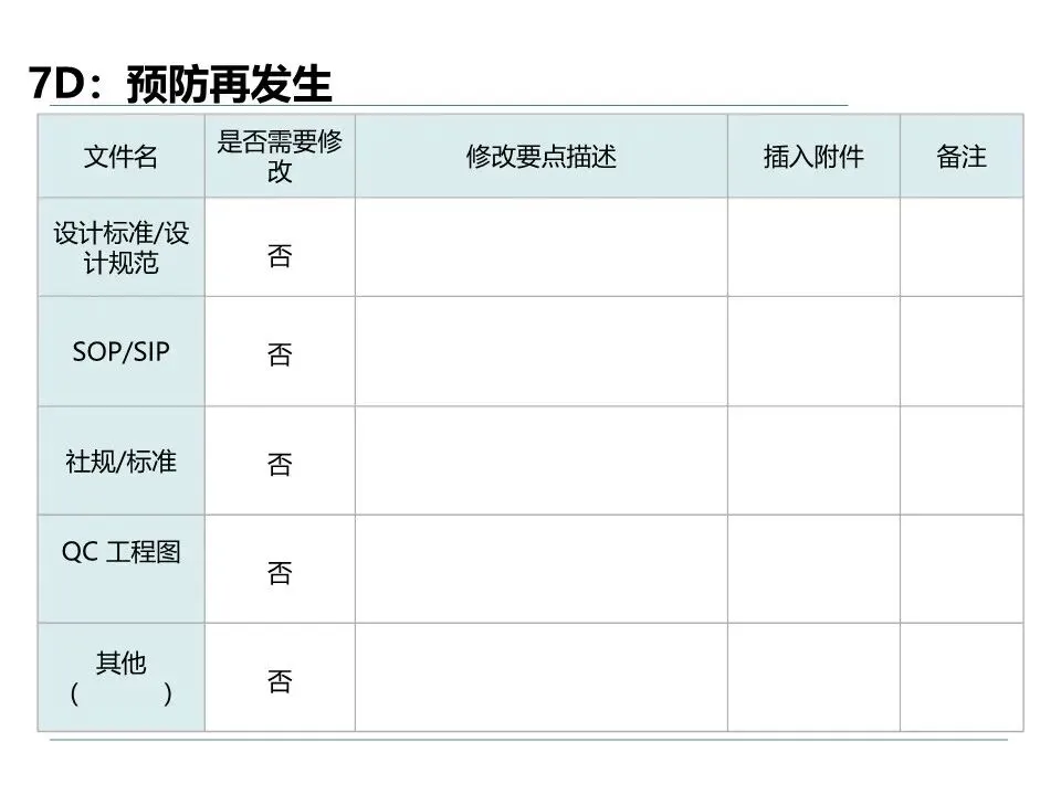 目的:把成功经验 “标准化、体系化、扩散化”,避免同类问题在其他地方发生这一步决定 8D 是 “关一个问题”,还是 “建一套能力”。