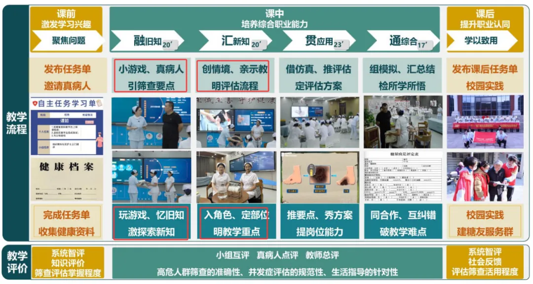 其次,注重“理论和实践结合”,加入真实案例、真病人、虚拟仿真这些真实场景,比如让真病人来课堂参与评估,让学生在虚拟平台练胰岛素注射,去社区随访时帮病人制定并落实运动方案,让理论直接对接实际应用。