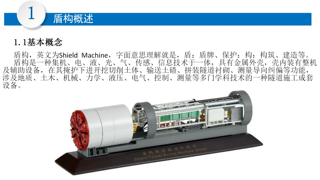 盾构是一种集机、电、液、光、气、传感、信息技术于一体,具有金属外壳,壳内装有整机及辅助设备,在其掩护下进开挖切削土体、输送土碴、拼装隧道衬砌、测量导向纠偏等功能,涉及地质、土木、机械、力学、液压、电气、控制、测量等多门学科技术的一种成套设备。