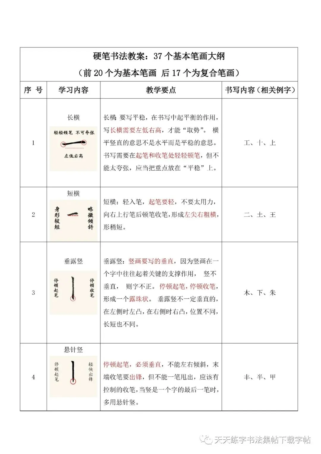 >硬笔书法教案:37个基本笔画大纲+104个偏旁部首教案+32种间架结构,word文档