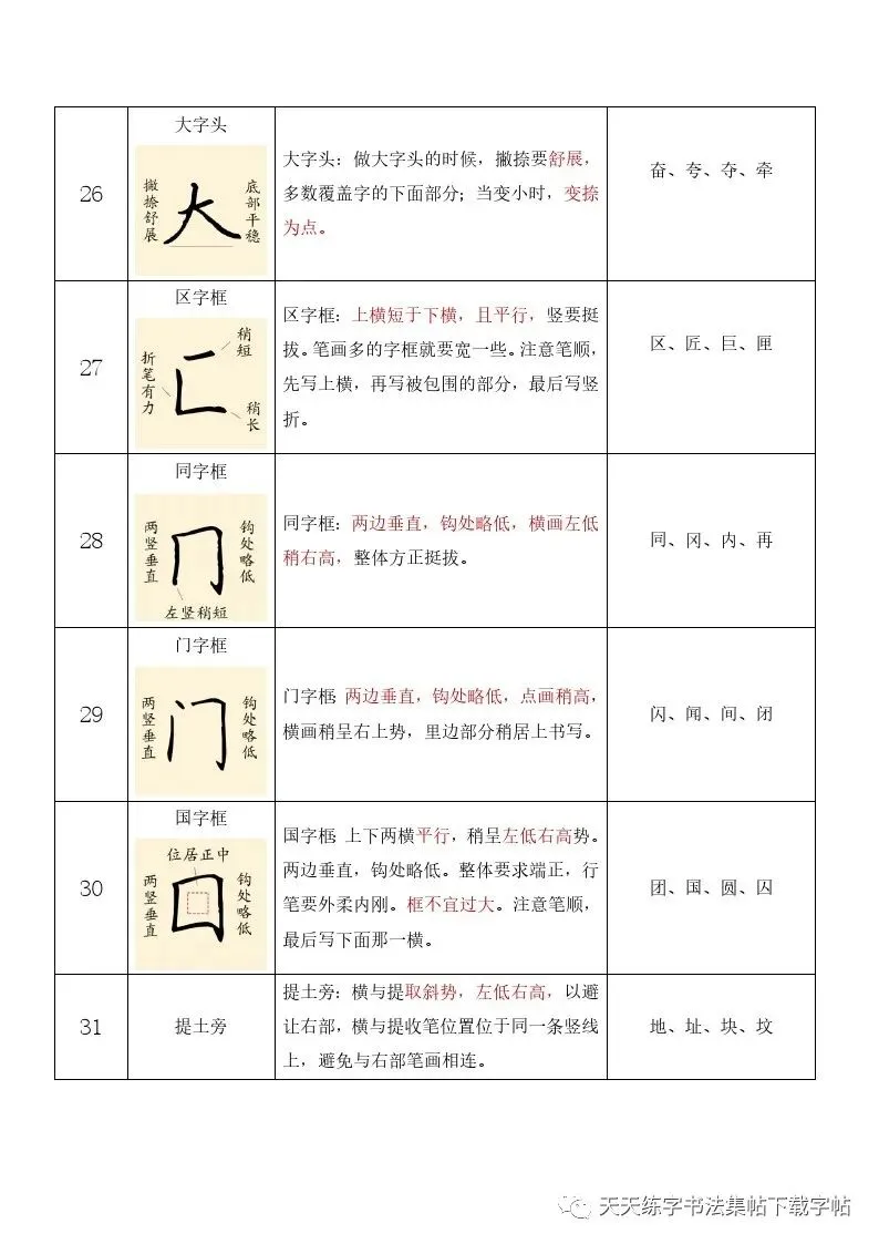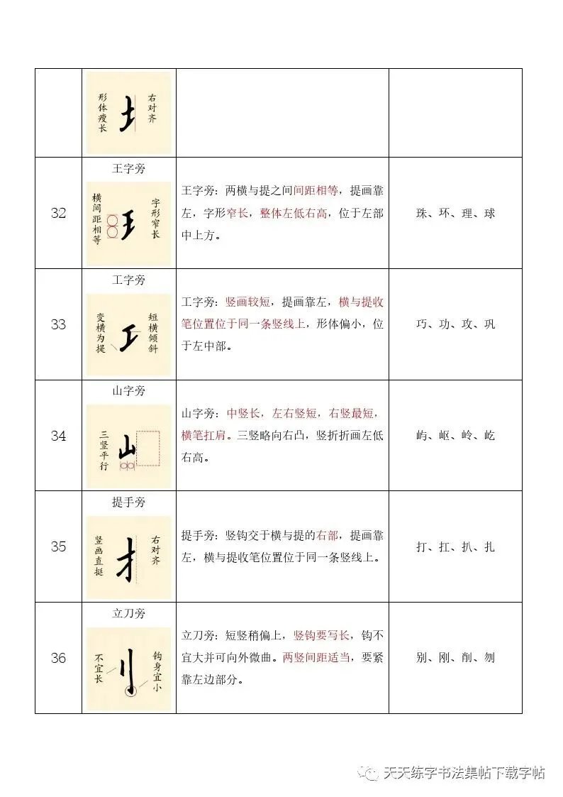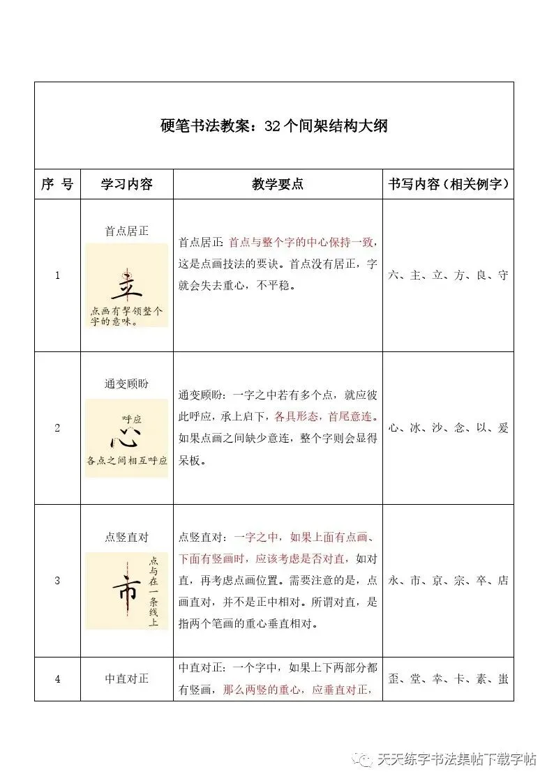 硬笔书法教案:37个基本笔画大纲+104个偏旁部首教案+32种间架结构,word文档
