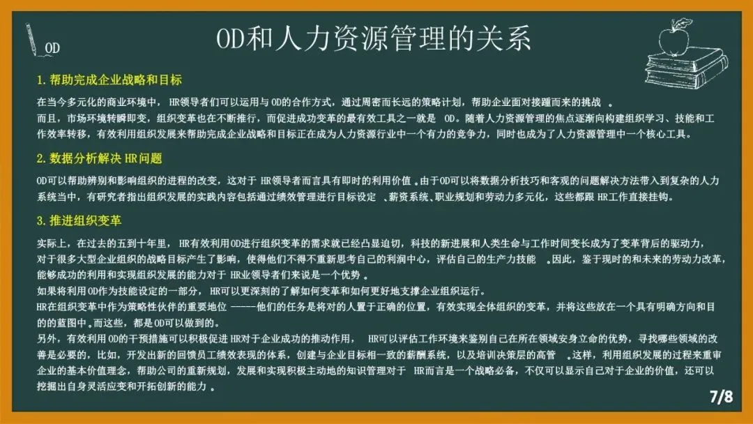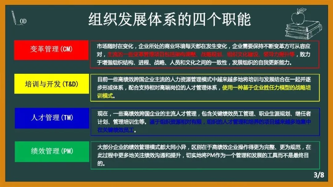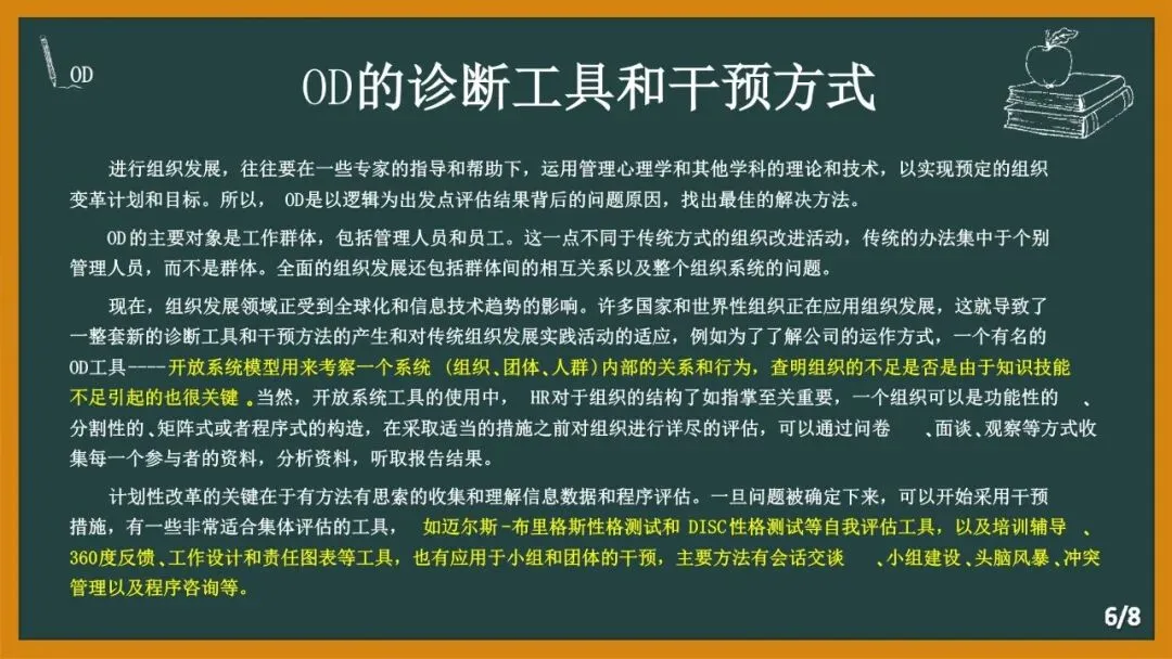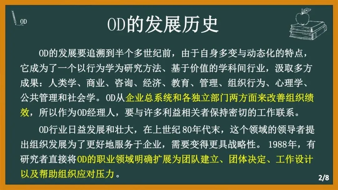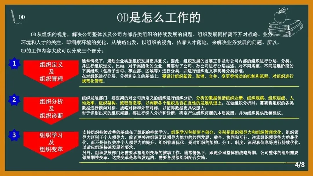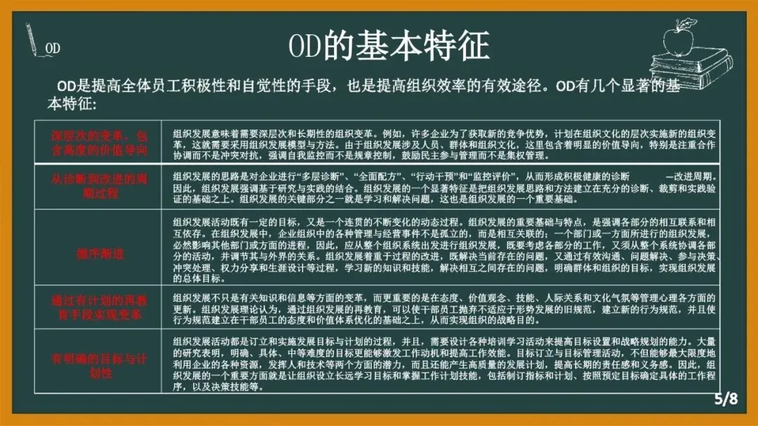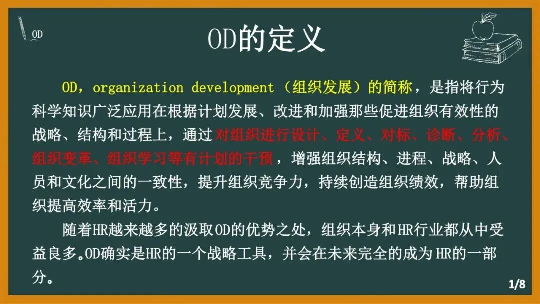 OD 是 **“有计划的变革”**。它是通过利用行为科学的知识,在组织中进行自上而下的、长期的、系统的干预,以改变组织的文化、结构和流程,从而帮助企业适应外部环境变化,实现战略目标。