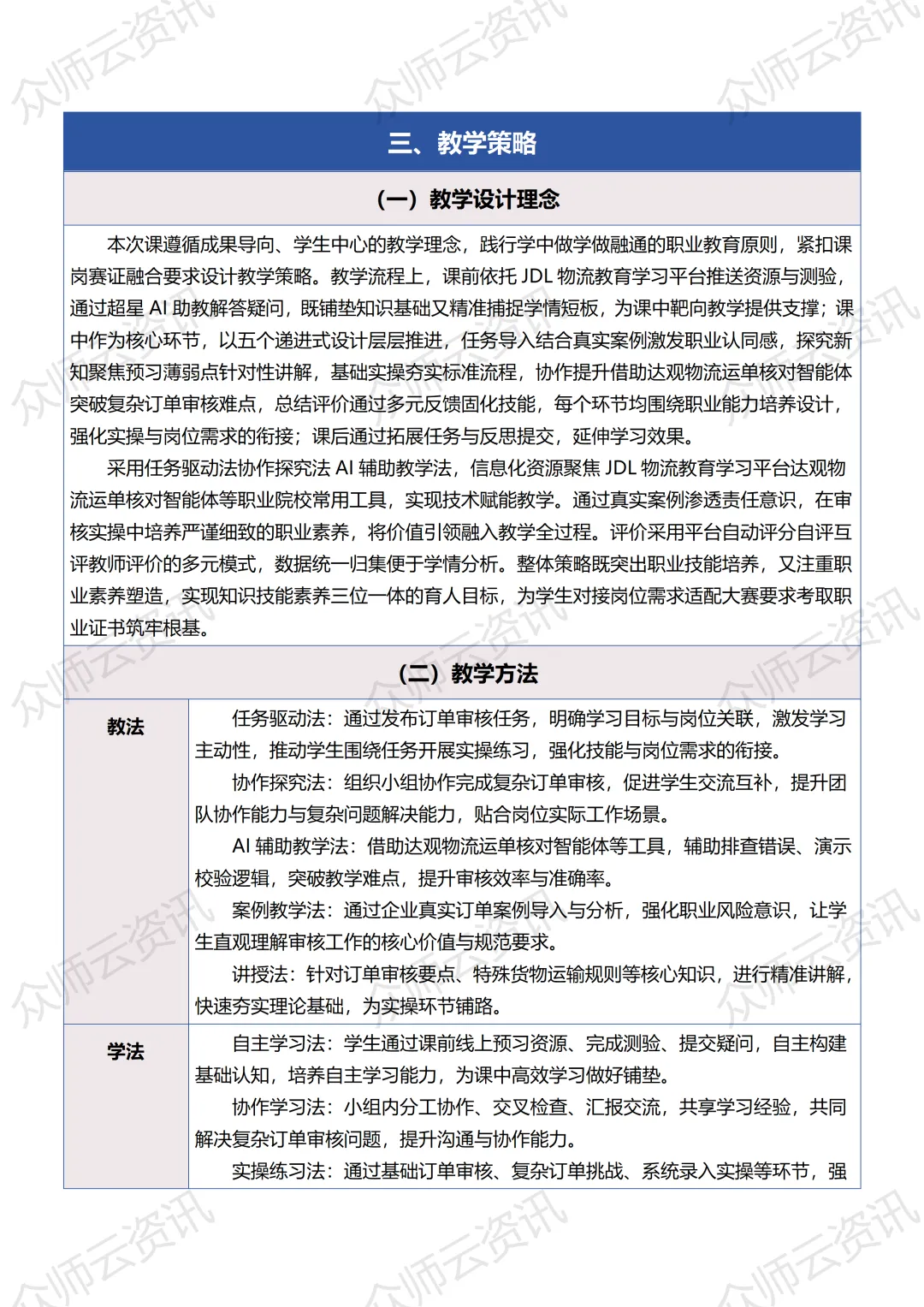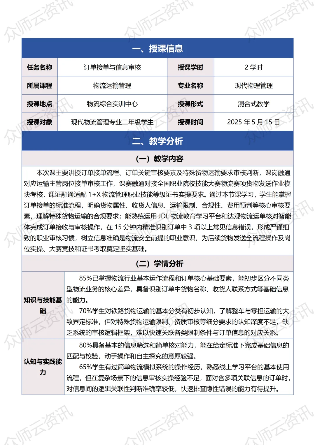2026年各类教师技能类比赛已经拉开序幕,要参加省赛,必须过校赛关,如何在没经费支持、时间又紧迫、又想弄出一点出彩的参赛材料等各种纠结中,找到合适的助手呢?今天给各位参加校赛的老师分享物流类课程的真实教案案例,可直接拿走借鉴修改,帮助您在较短时间内高质量完成一份符合参赛水准的教案。