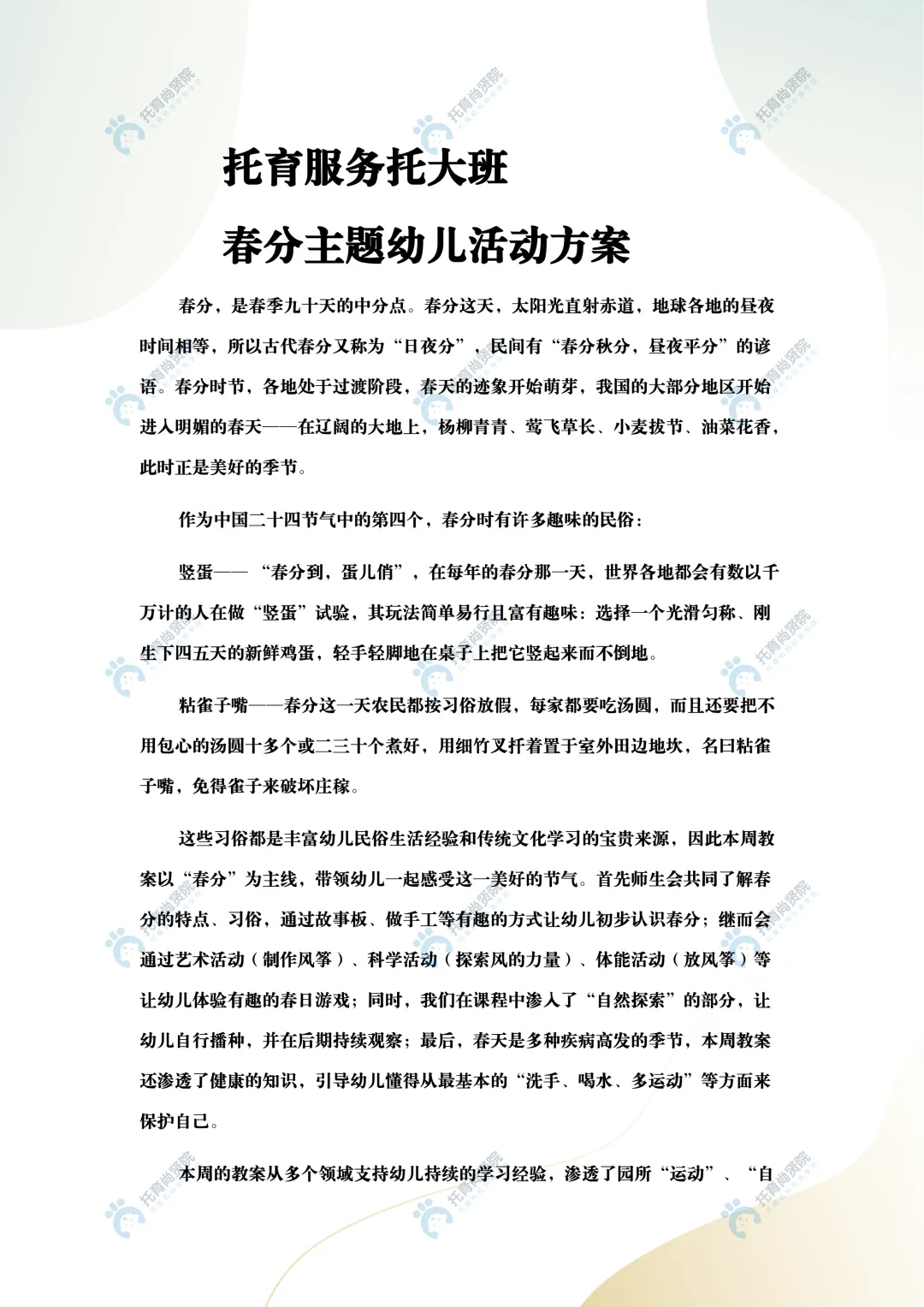 幼儿园办托,2026春分主题活动教案模板(含医育融合)