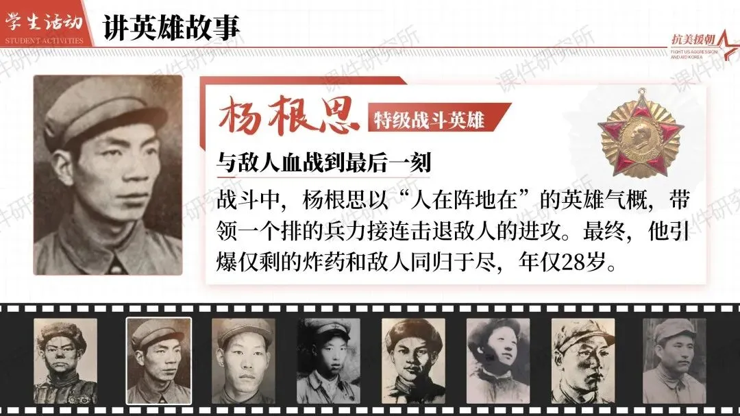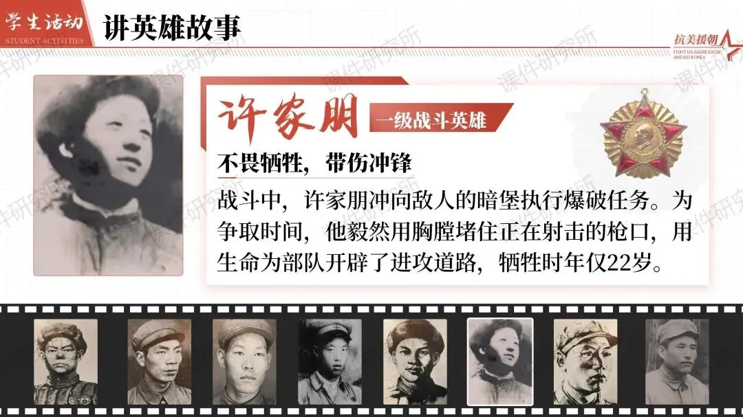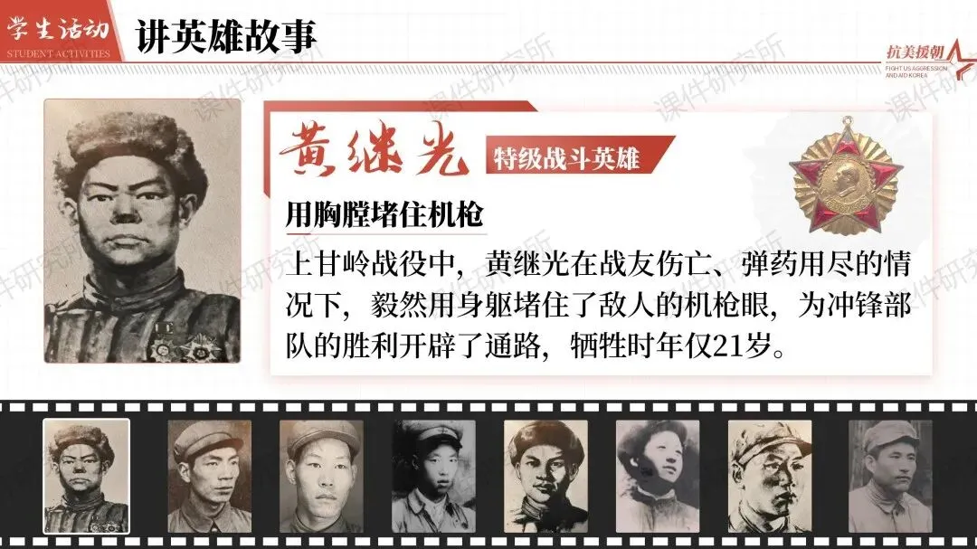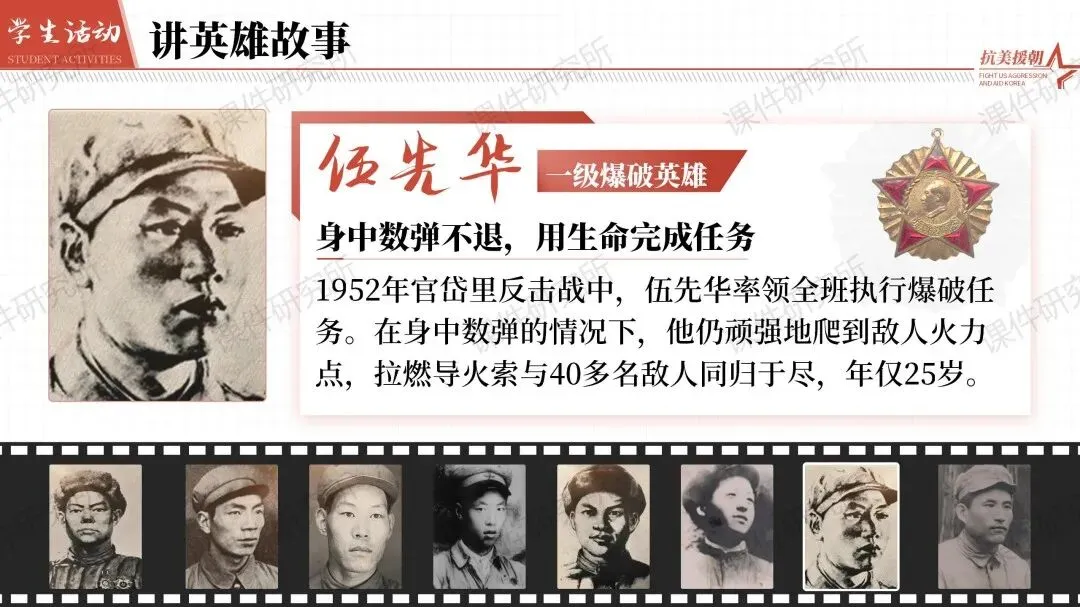三:整理英雄人物的简介,让学生认识到中国人志愿军的伟大和可爱之处。