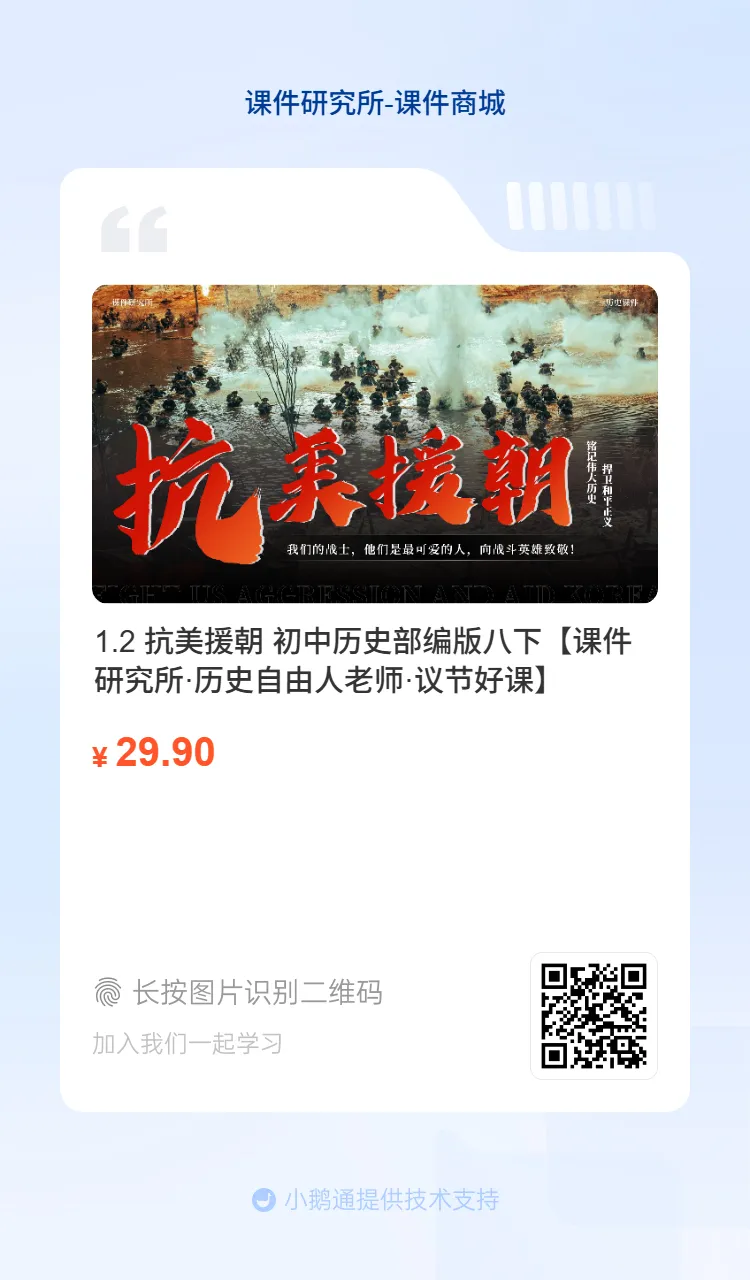 🎉🎉今天,初中历史议节好课教研群要介绍的是《抗美援朝》课件。