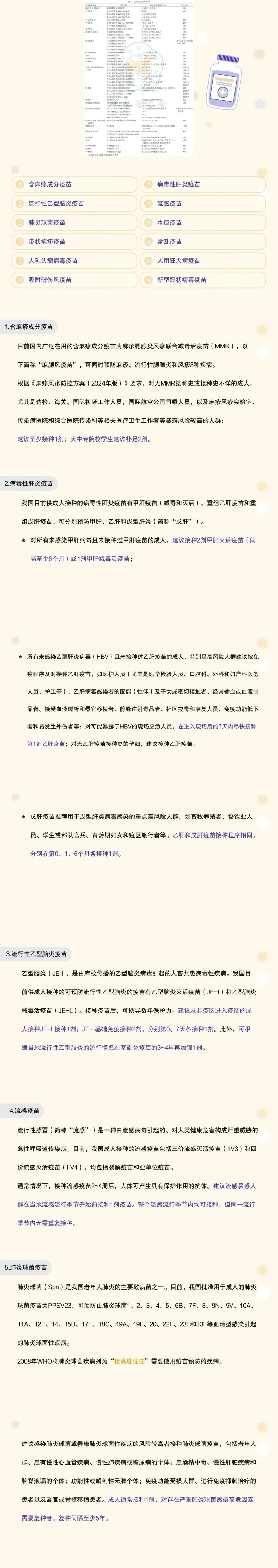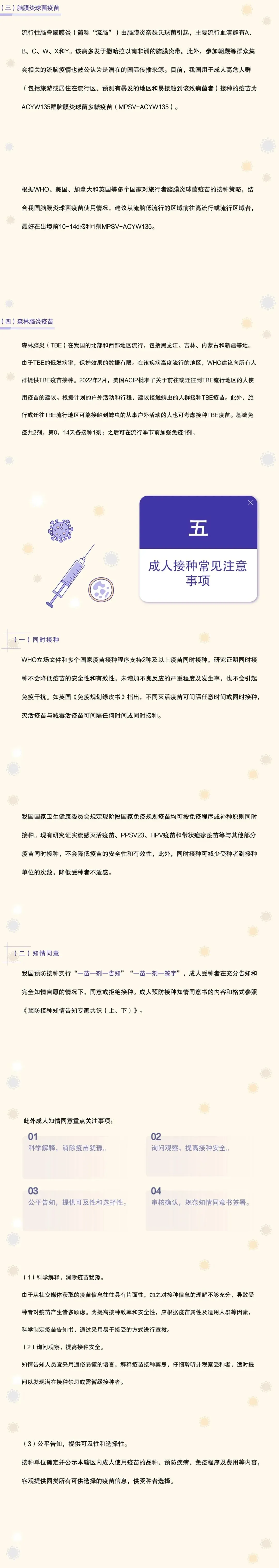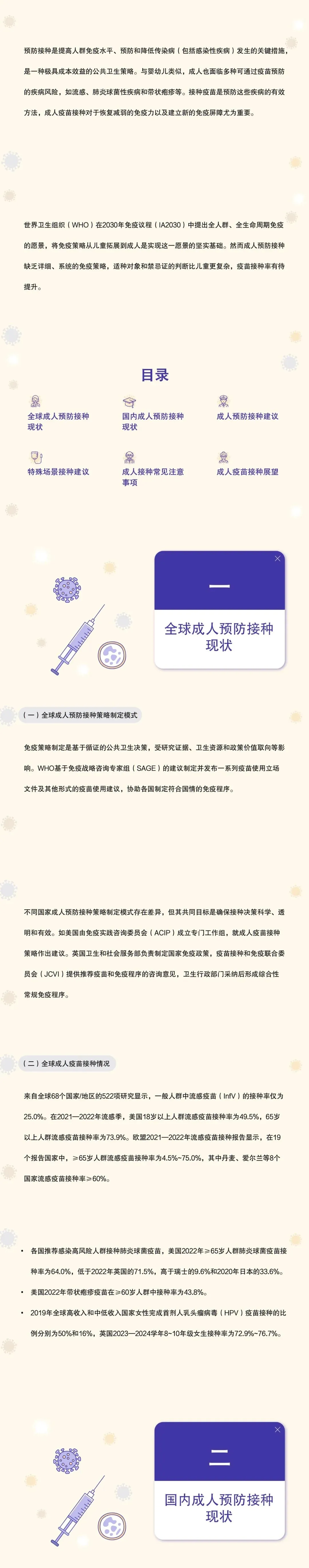 - 系统梳理成人预防接种建议、特殊场景接种建议、成人接种常见注意事项等内容;