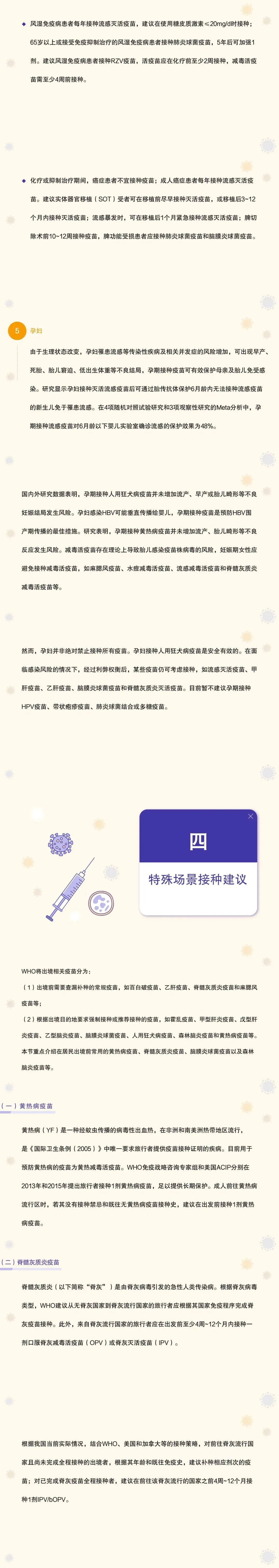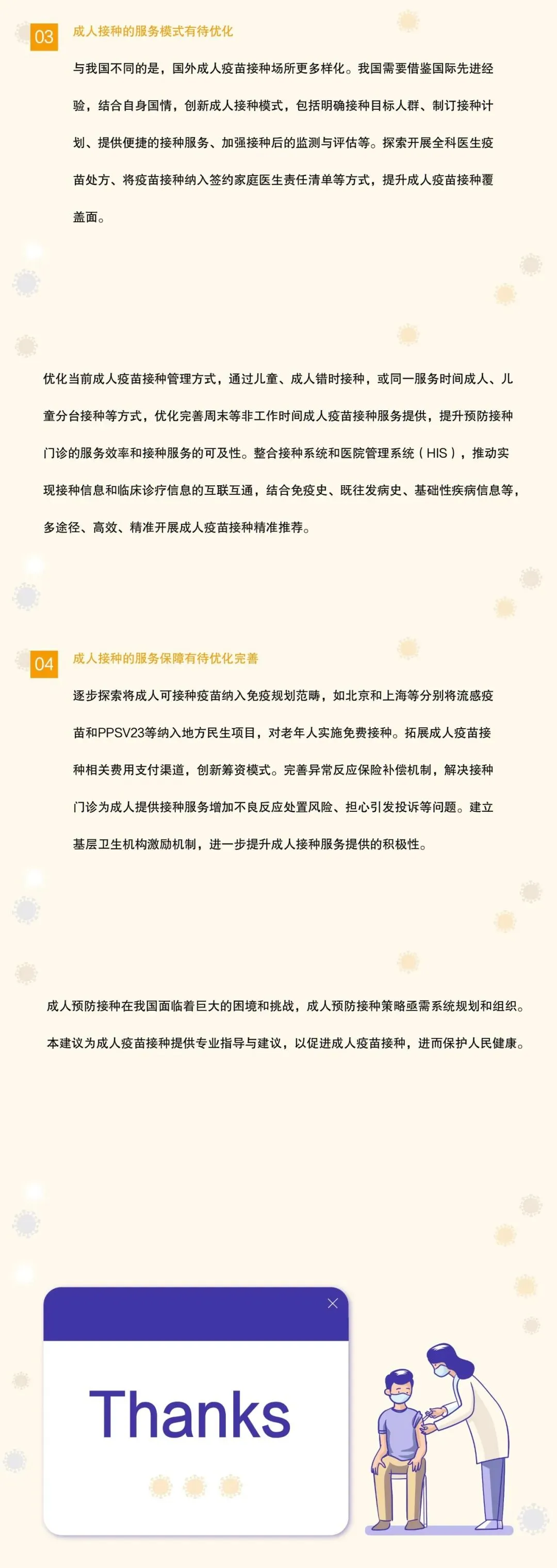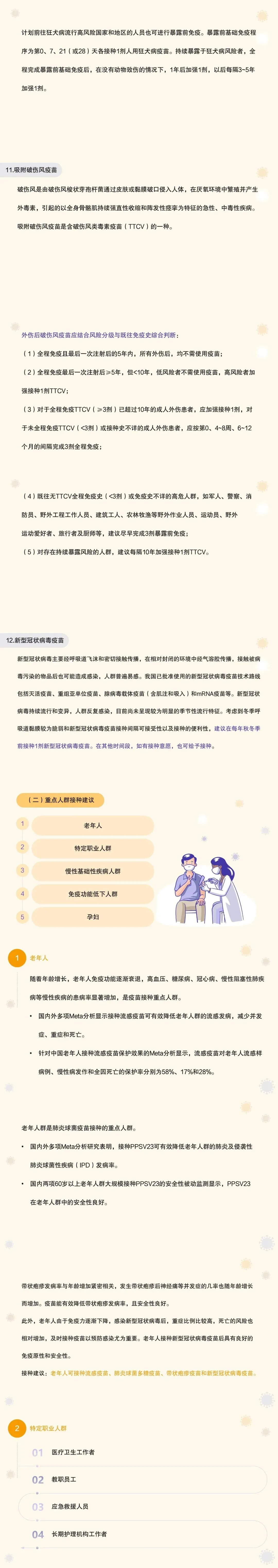 - 系统梳理成人预防接种建议、特殊场景接种建议、成人接种常见注意事项等内容;