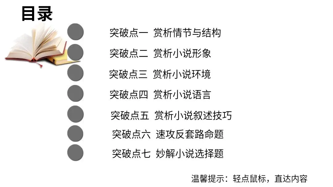 【26届高考语文二轮专题复习】小说阅读课件(1.赏析小说的情节与结构,2.赏析小说形象,3.赏析小说环境,4.赏析小说语言,5.赏析小说叙事技巧,6.小说反套路答题,7.妙解小说选择题)课件
