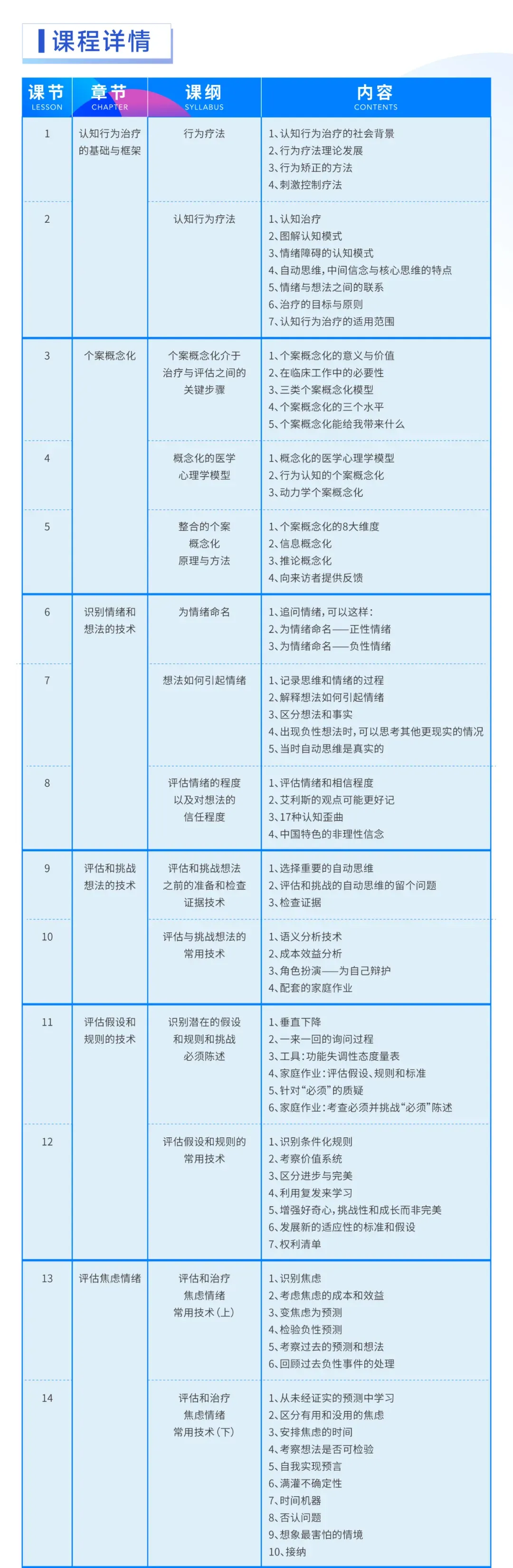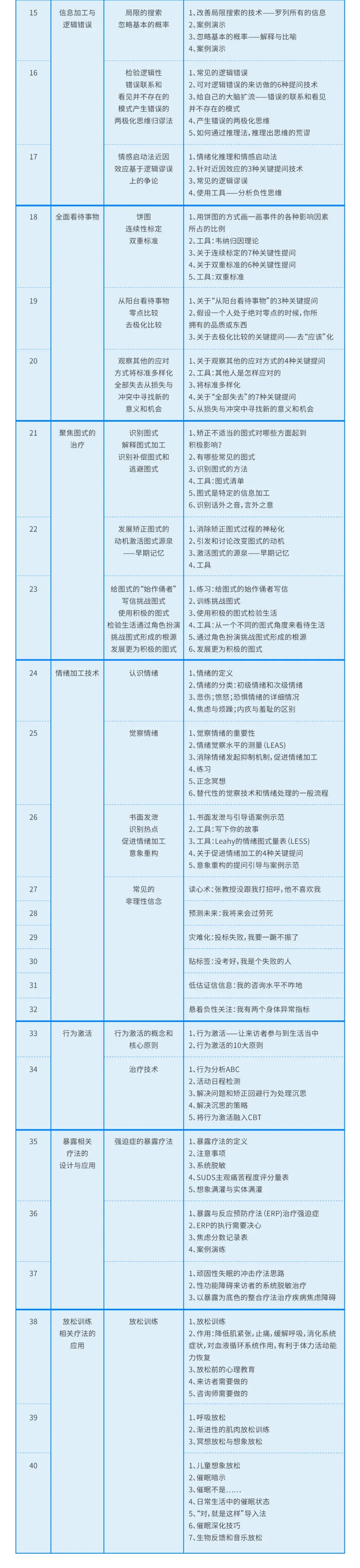 涵盖角色扮演、权力清单、聚焦图式、书写发泄、意象重构、行为激活、零点比较等最常用的技术,手把手带领,通过案例的形式讲通透,让你学完就能用上。今天上新秒杀,仅需128元。