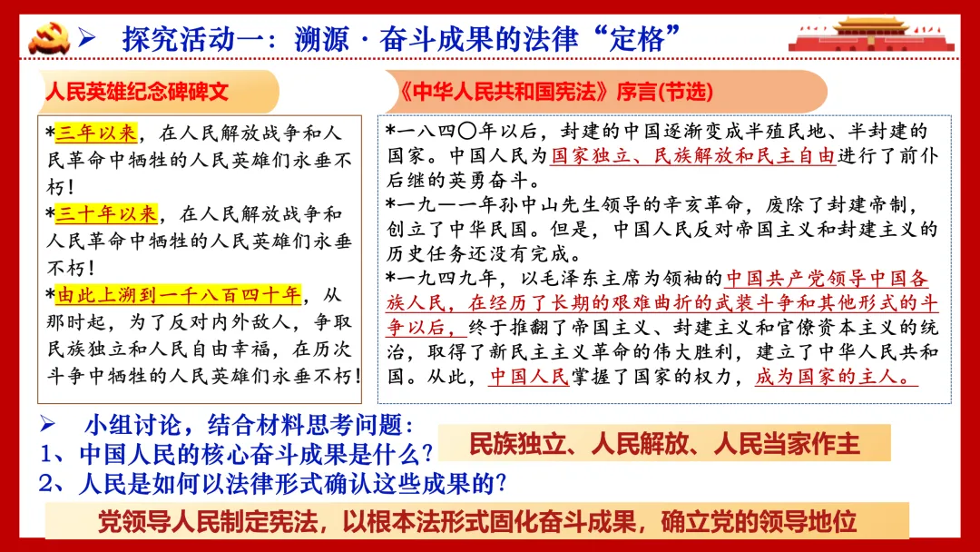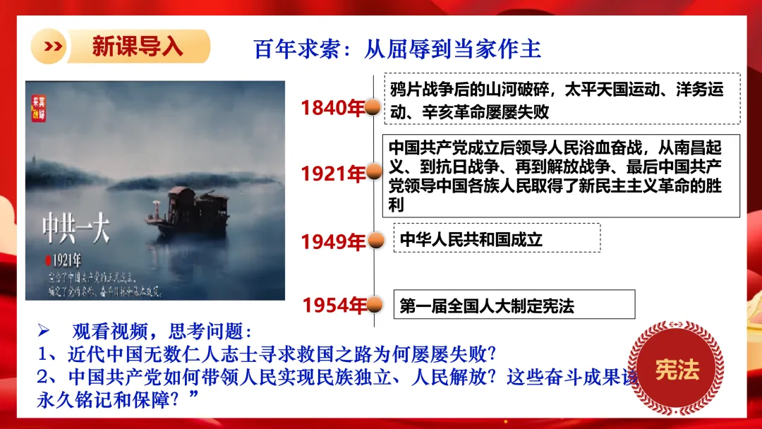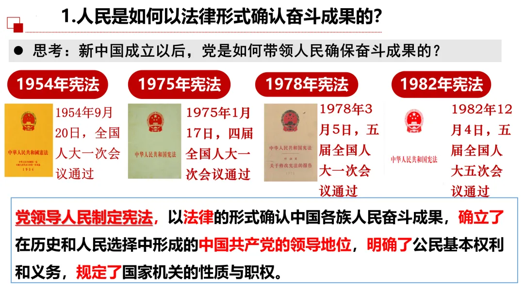 >1.1+党领导人民制定宪法+课件-2025-2026学年统编版道德与法治八年级下册